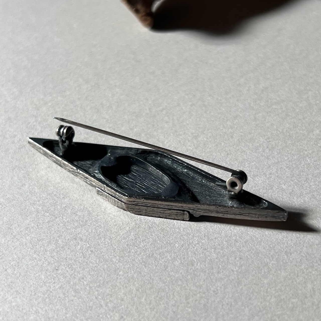 菱形にグレイのラインストーンが、かっこいい雰囲気のブローチです。