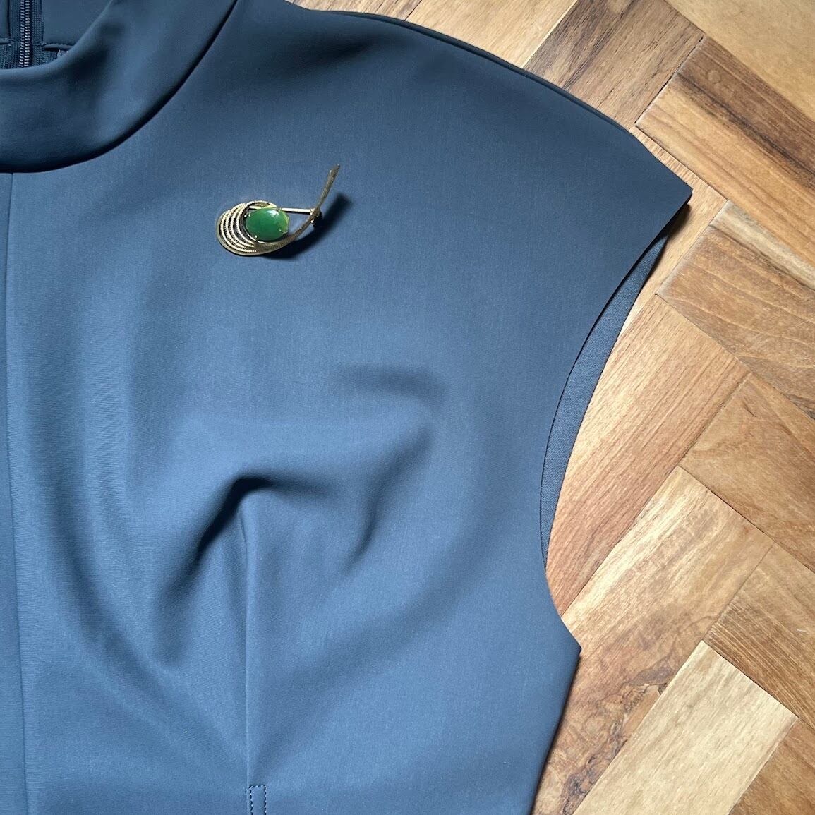 曲げ加工で作る立体感や抜け感と,、天然石の組み合わせが良いブローチです。