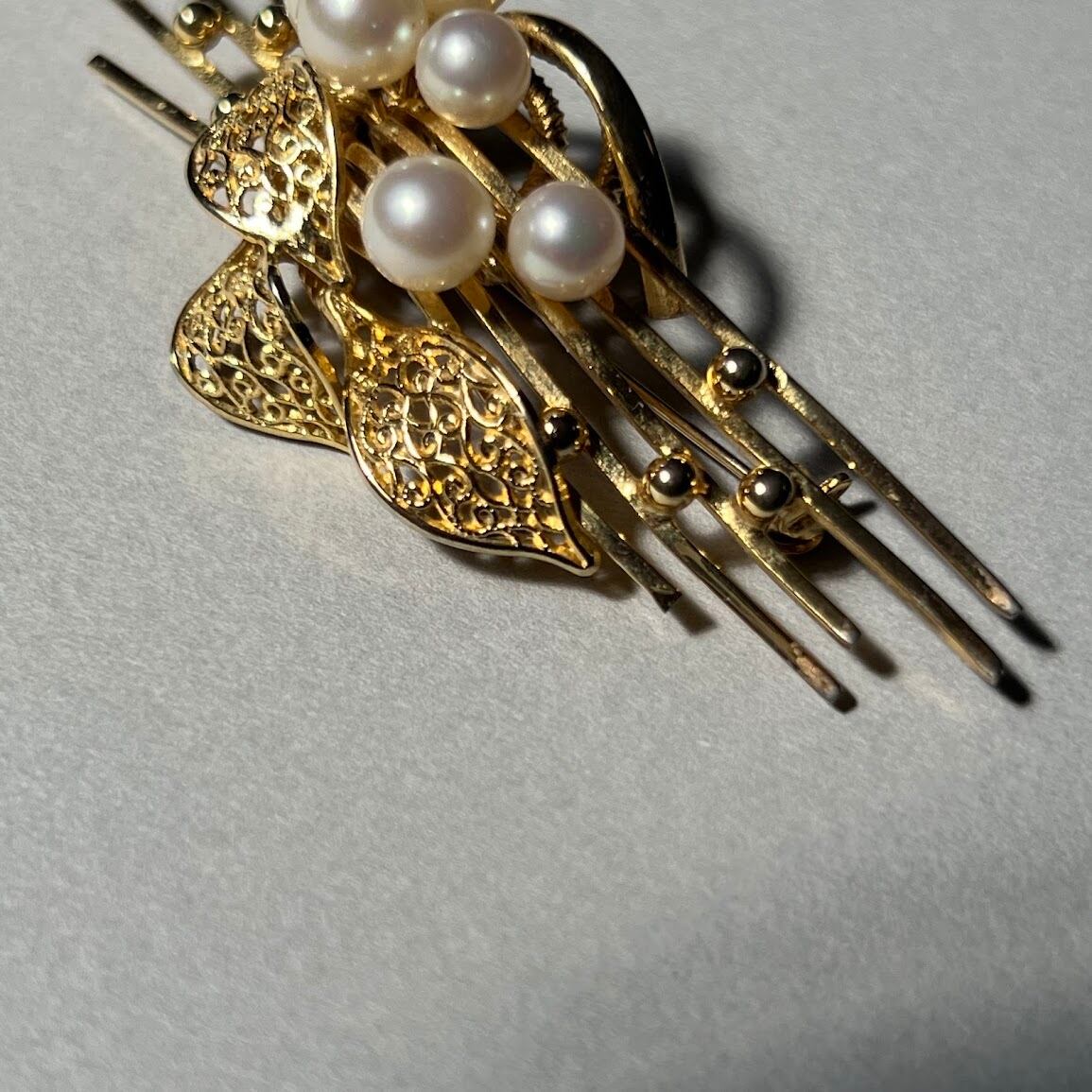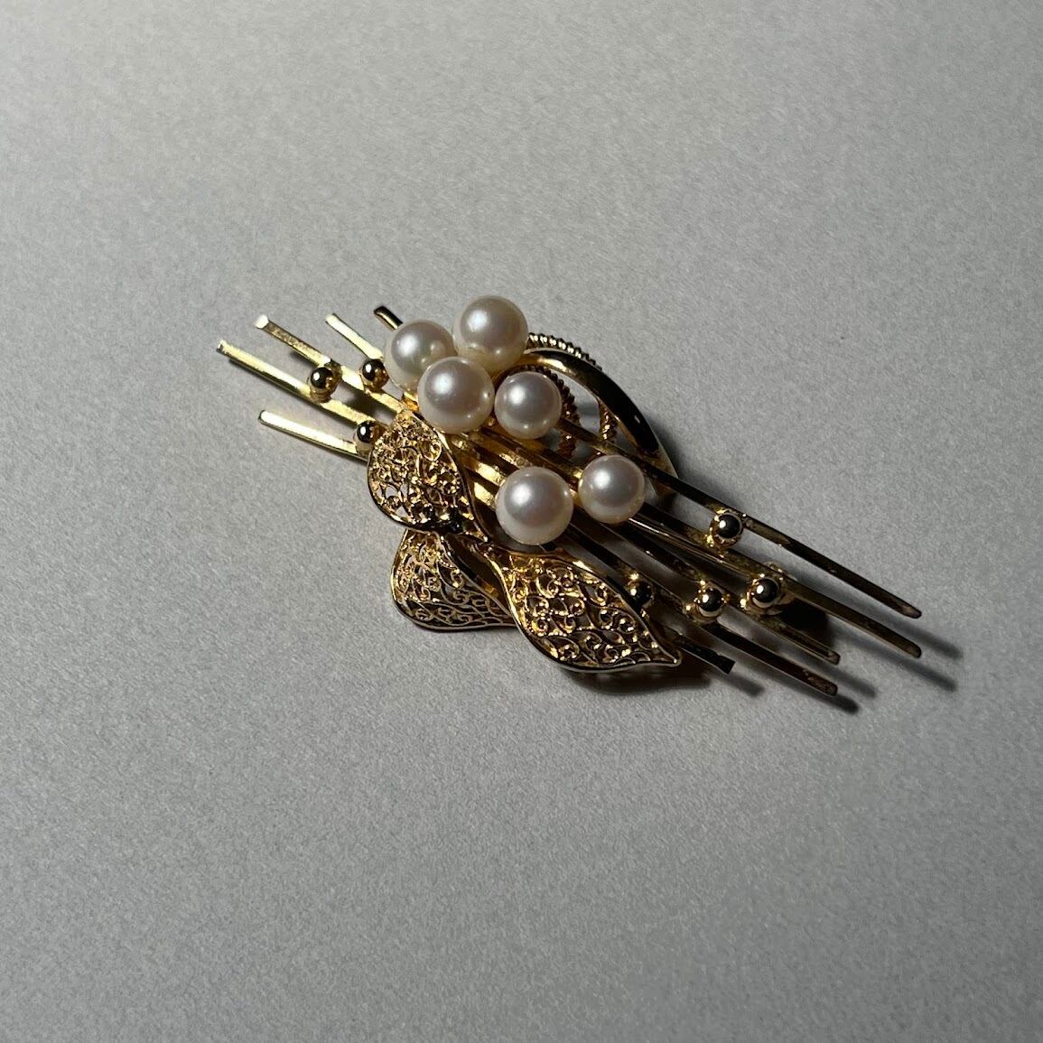 手間をかけ、いくつものパーツを重ねて、立体的に見えるデザインになっている素敵なブローチです。