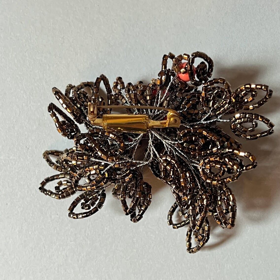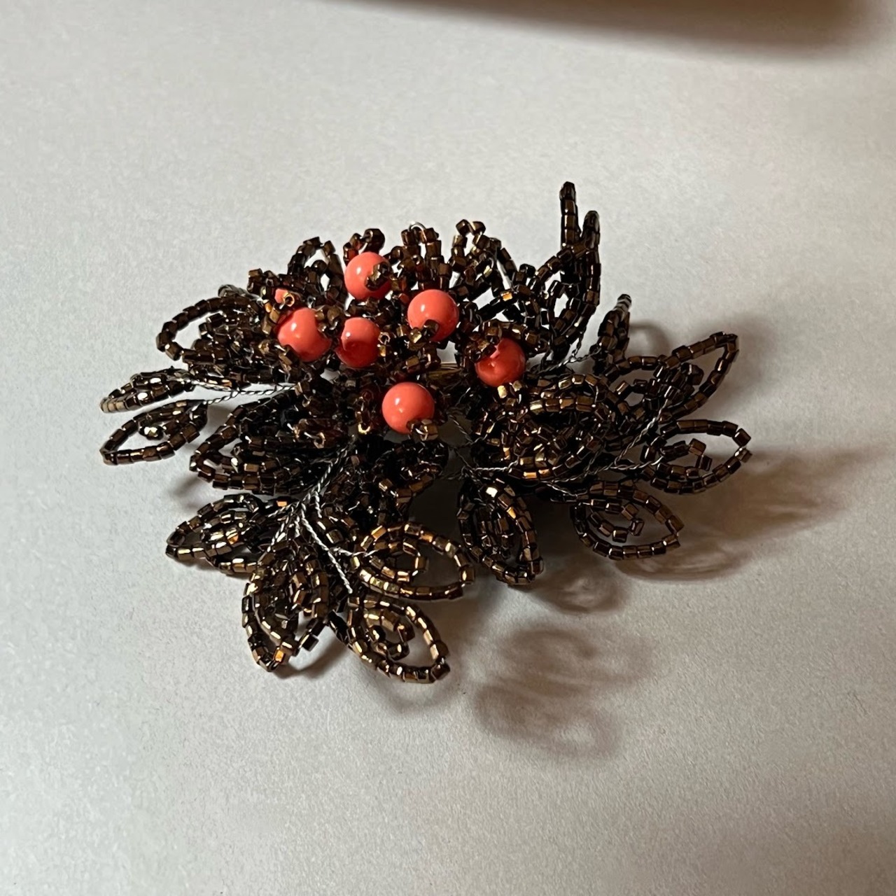 ワイヤーとビーズでデザインされた、立体感が素敵なブローチです。