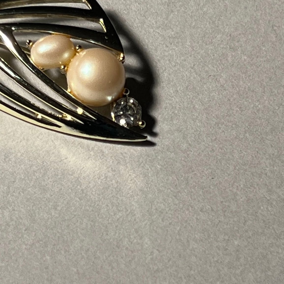 パールとガラスストーンの組み合わせが上品なブローチです。