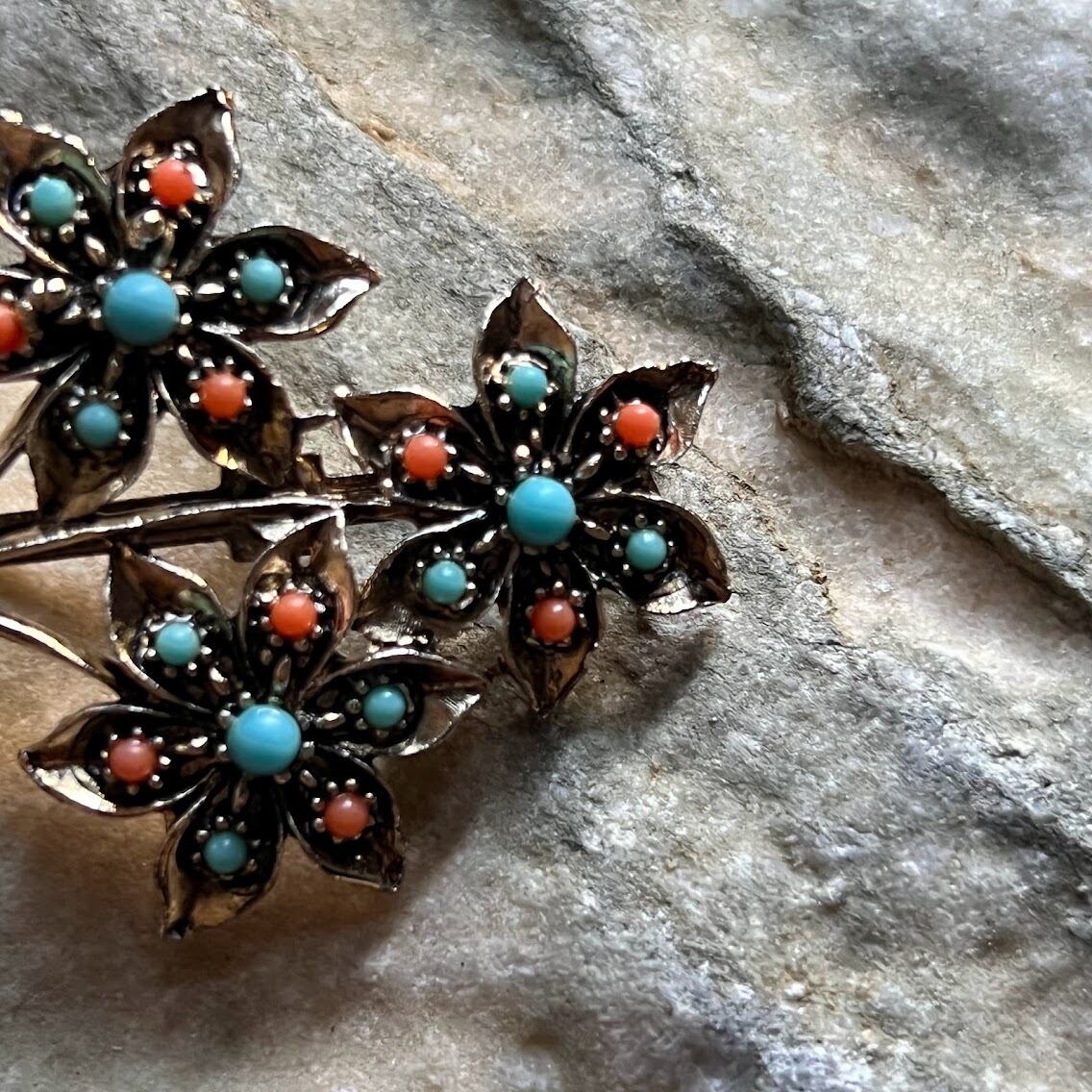 フラワー ターコイズカラー ブローチ 《A-0100》