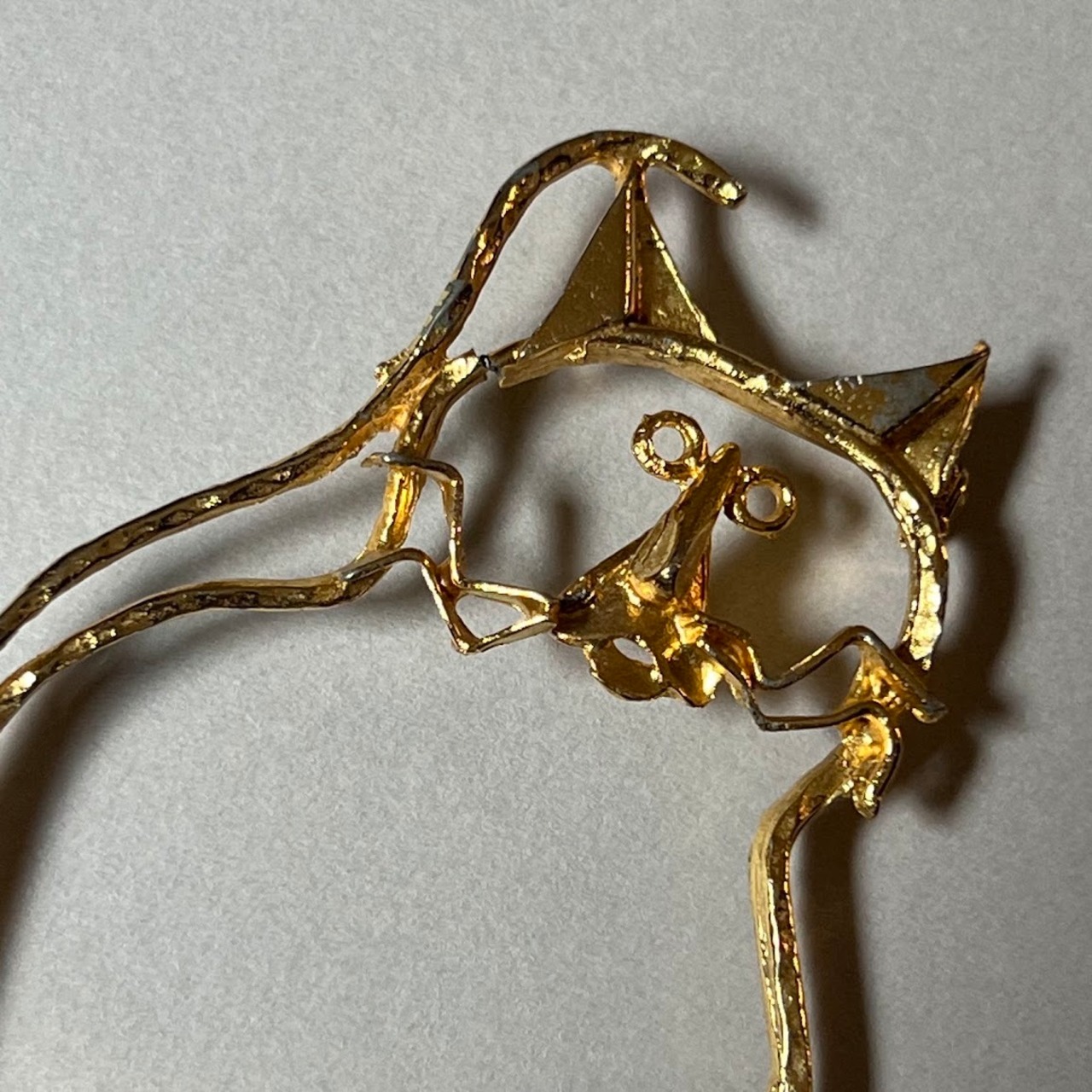 真鍮の線だけで描かれた、ユニークなデザインのブローチです。