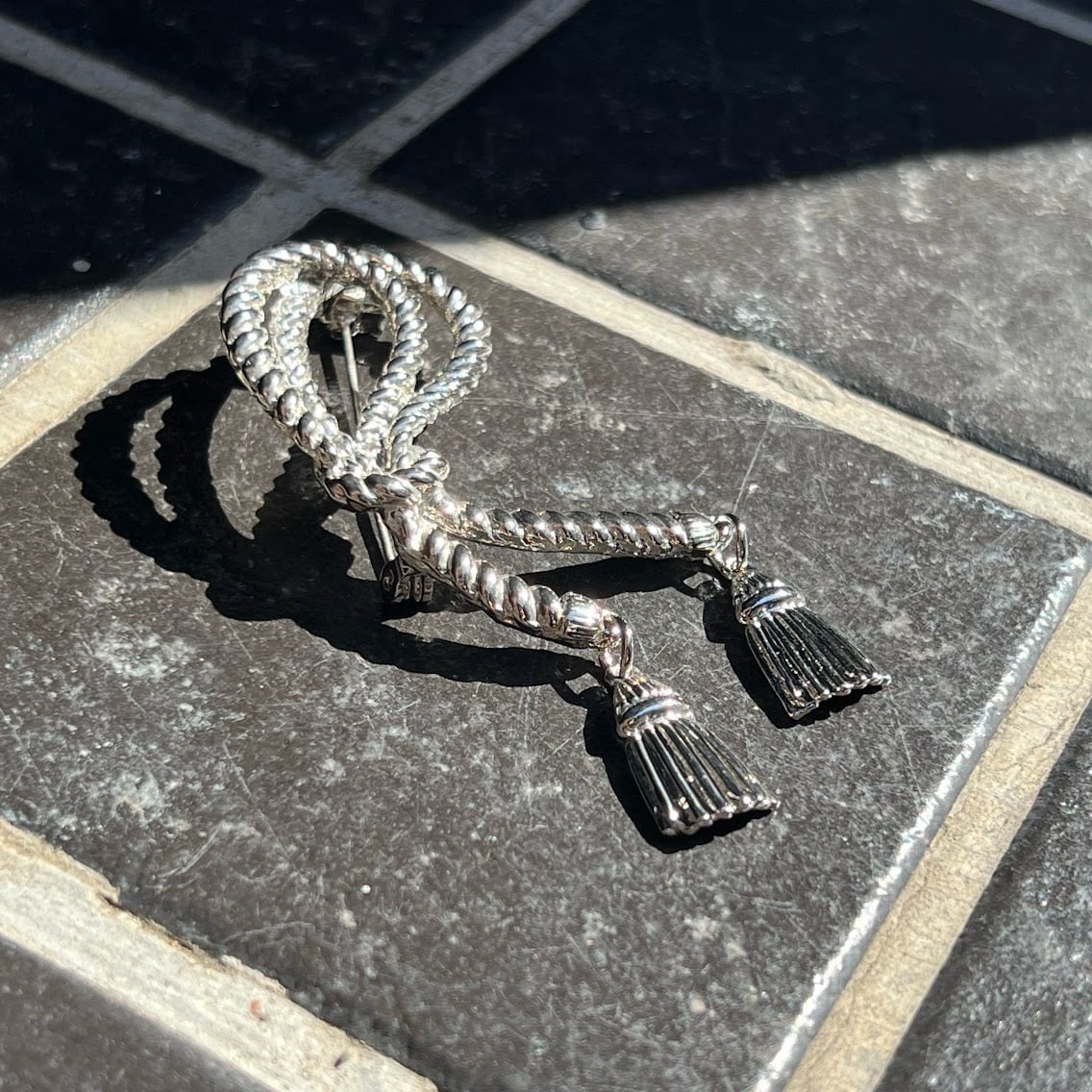 ノットについているタッセル部分が、輝き、揺れ動くブローチです。