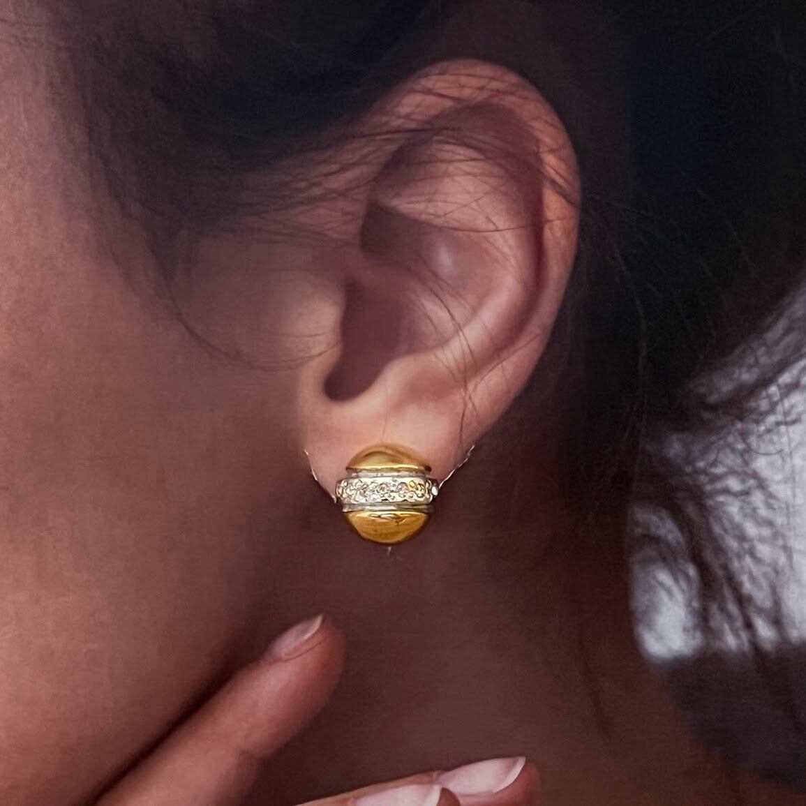 丸みのあるフォルムと中心の小さな石のデザインが魅力的なイヤリングです。
