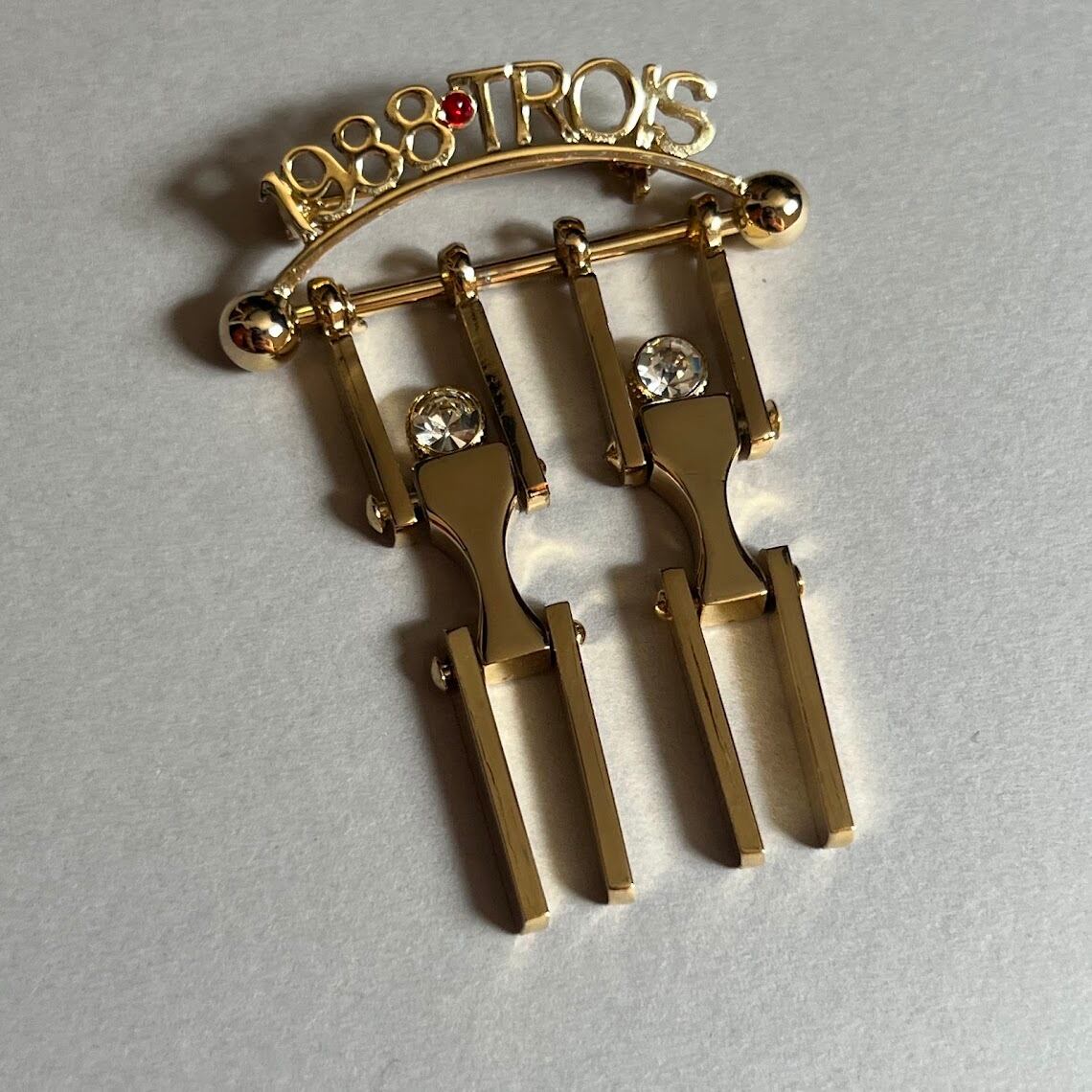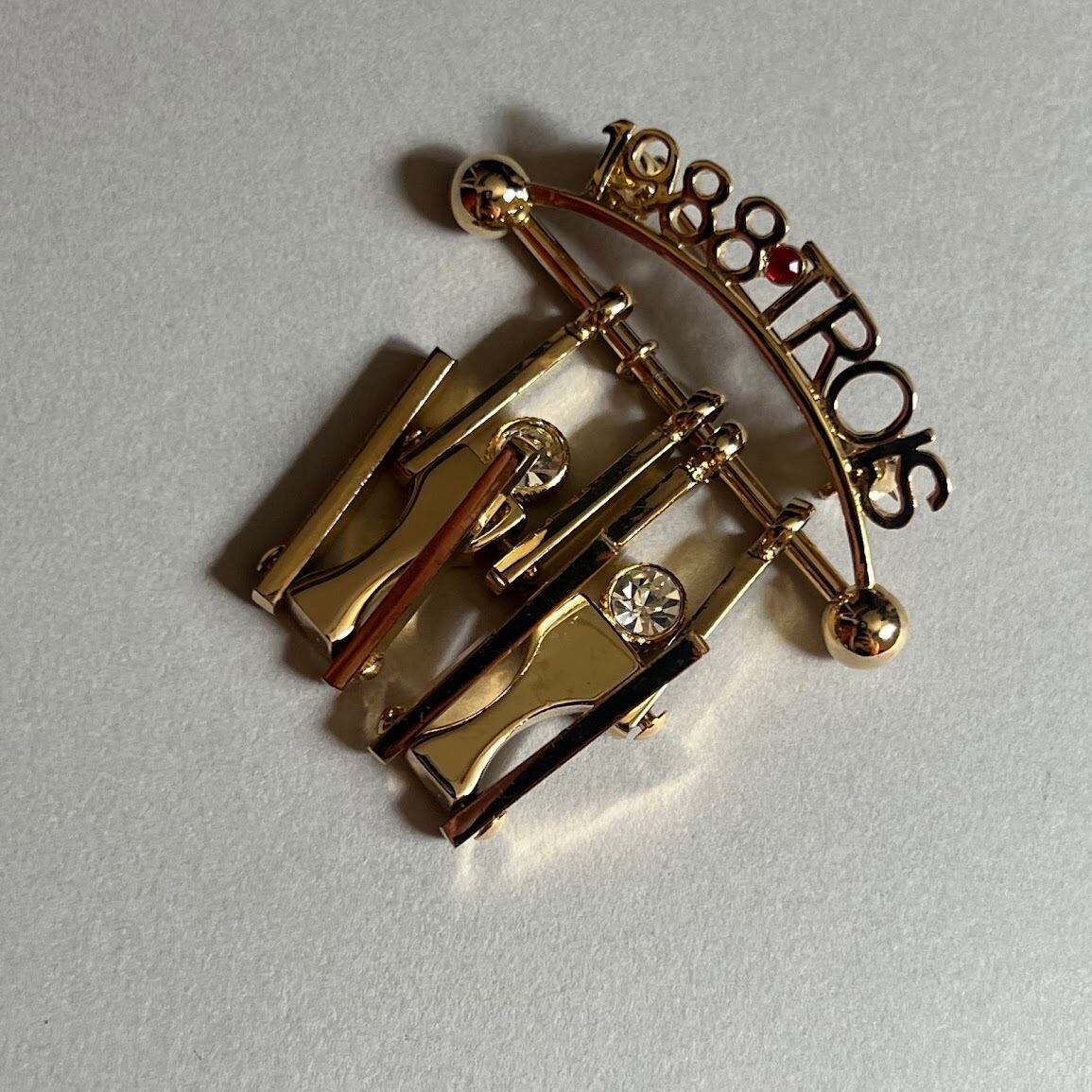 ぶら下がった二人の手や足が、横に縦に揺れるユニークなブローチです。