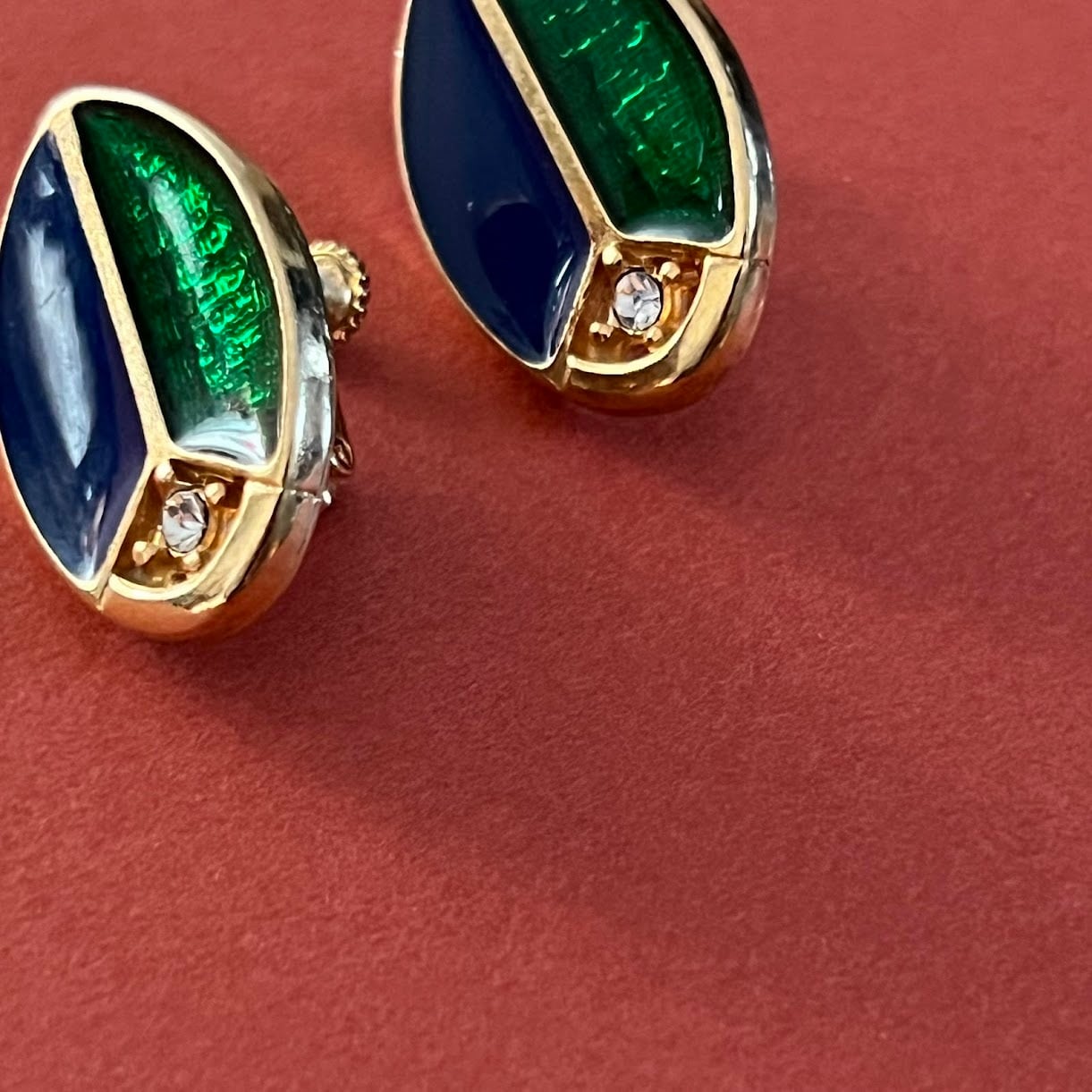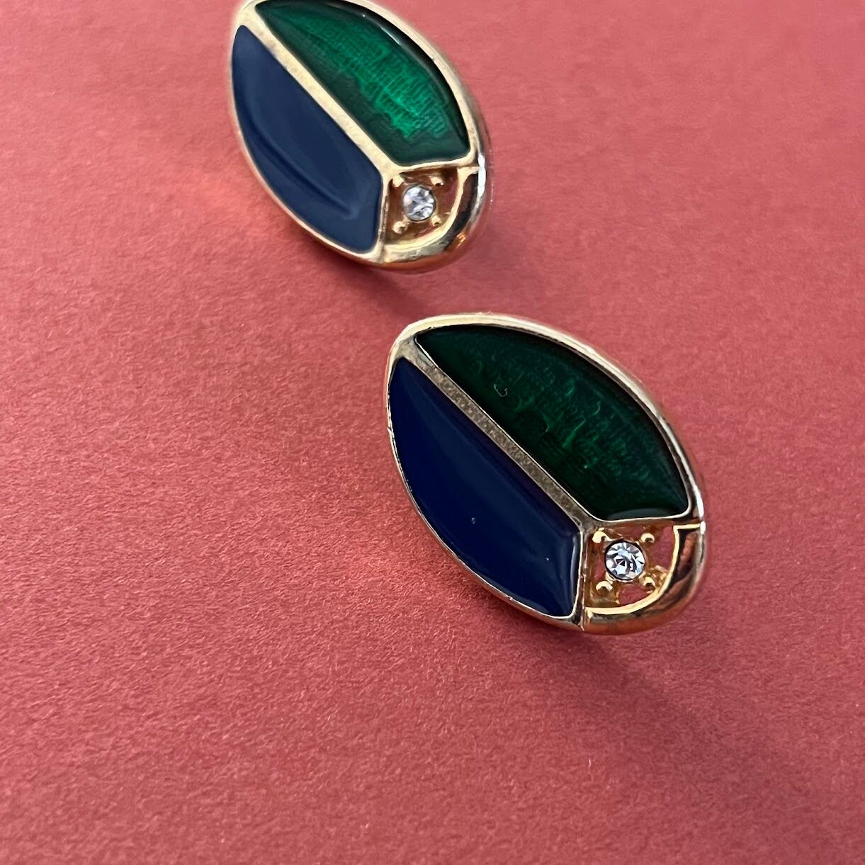 深みのあるブルーとグリーンの色合いが雰囲気あるイヤリングです。
