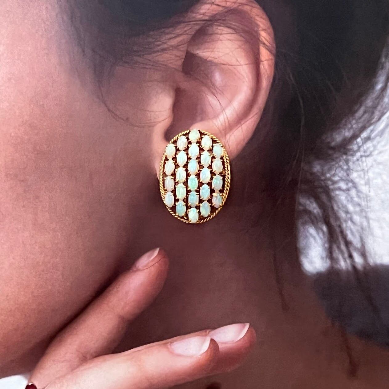 贅沢に使ったオパールが艶っぽく上品に輝くイヤリングです。