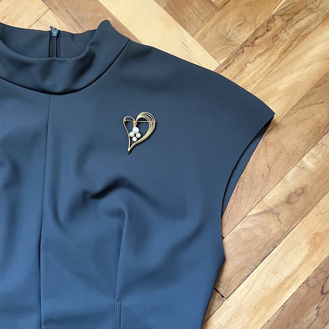 ハート 線曲げ加工 パール ブローチ 《A-0136》