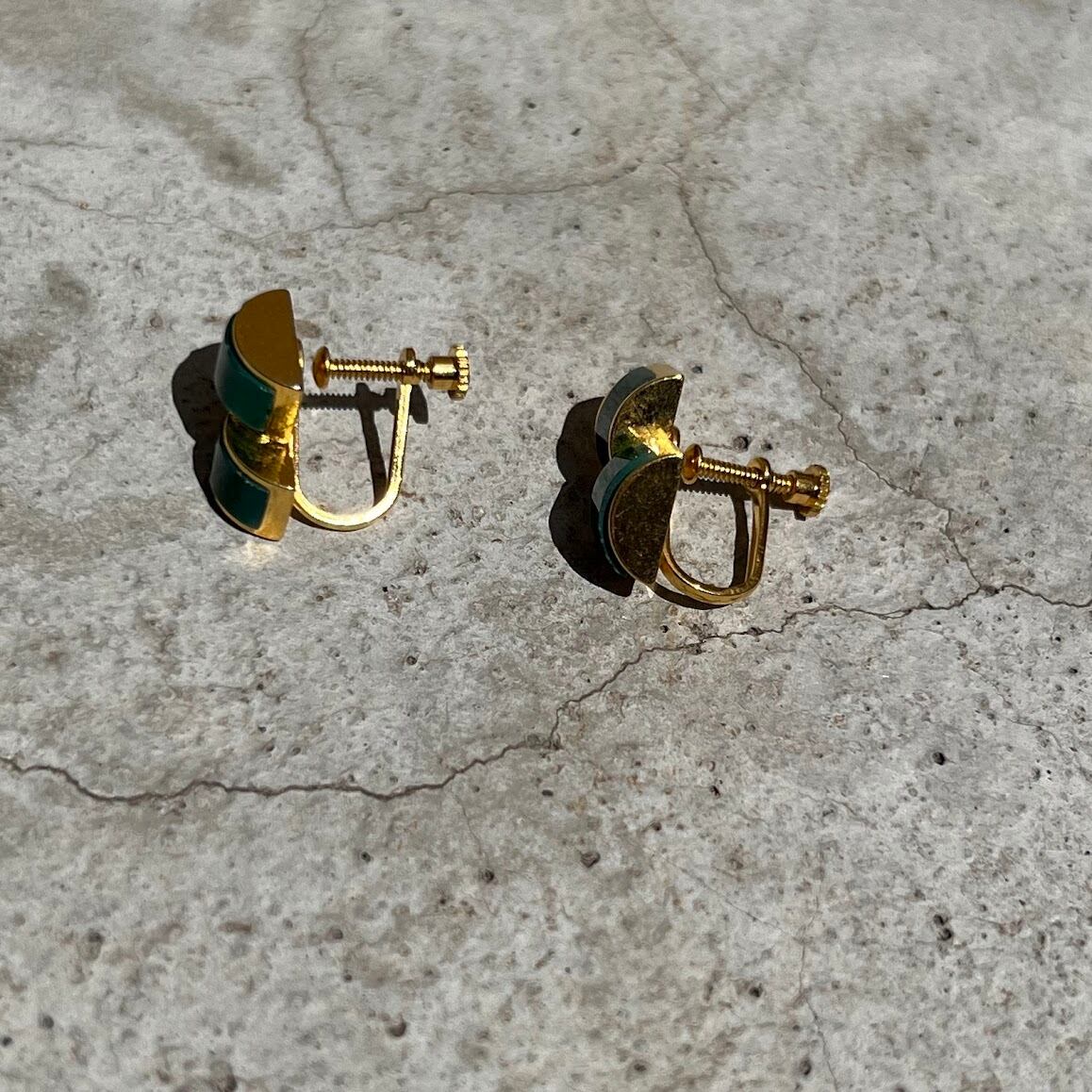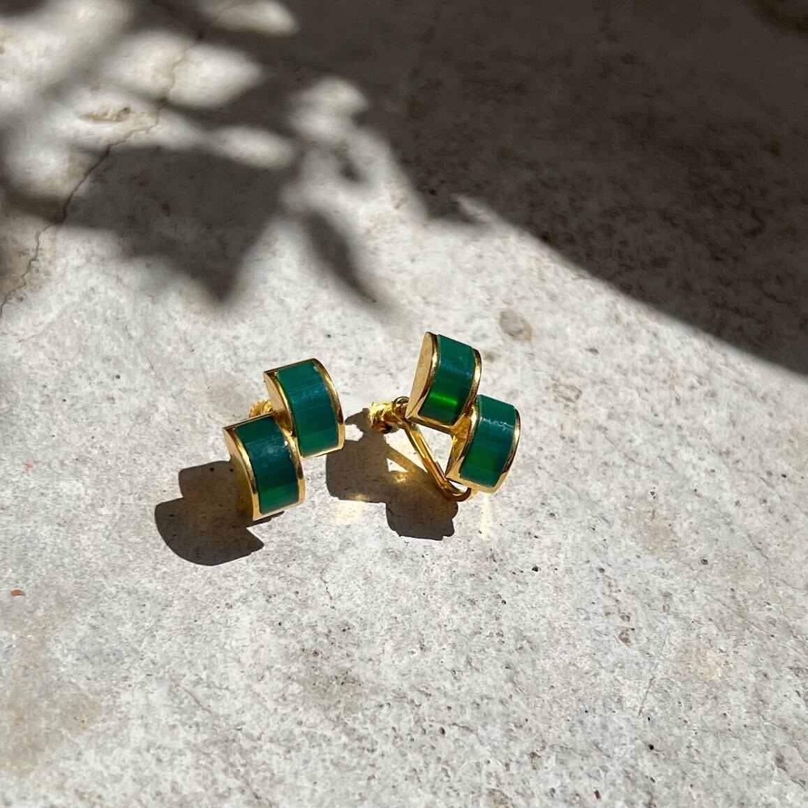 天然の石のカラーがきれいな、2連風デザインのイヤリングです。
