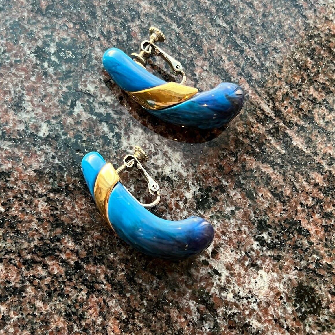 深みのあるマーブルブルーの色合いが、雰囲気あるイヤリングです。