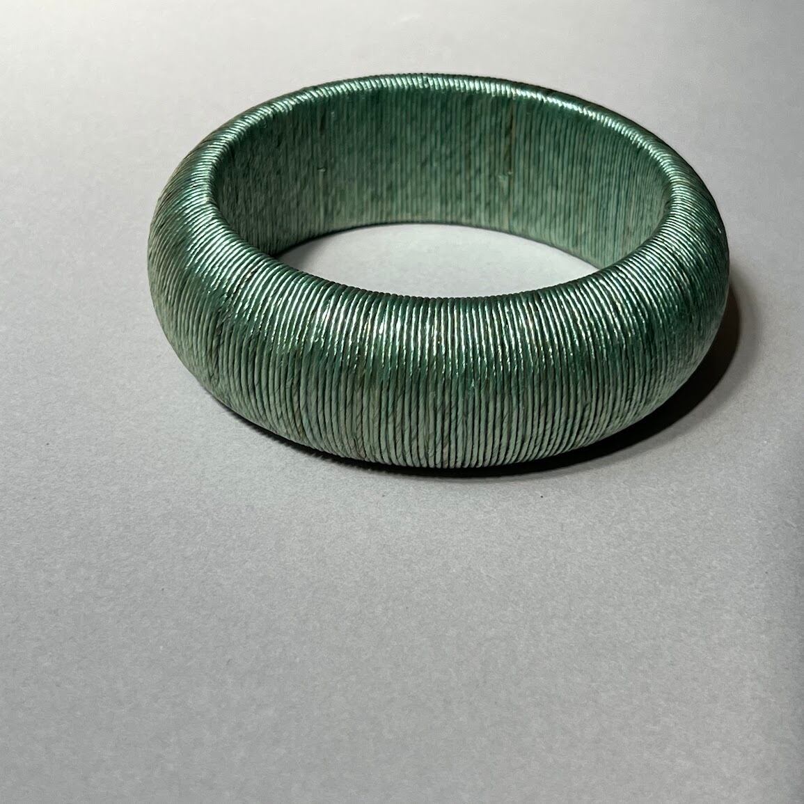 コードで編まれた、独特の風合いがある、きれいな色のバングルです。