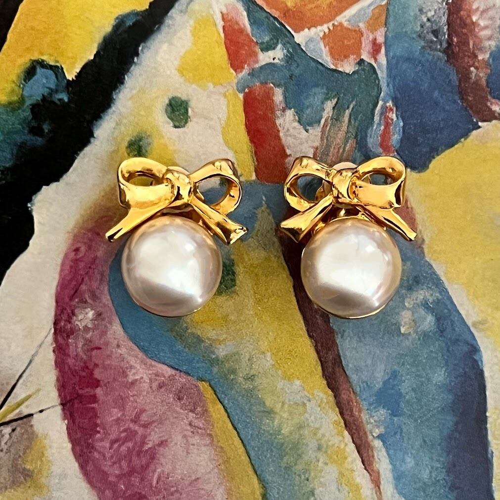 丸みのあるシルエットが、ヴィンテージ感あるリボンのイヤリングです。