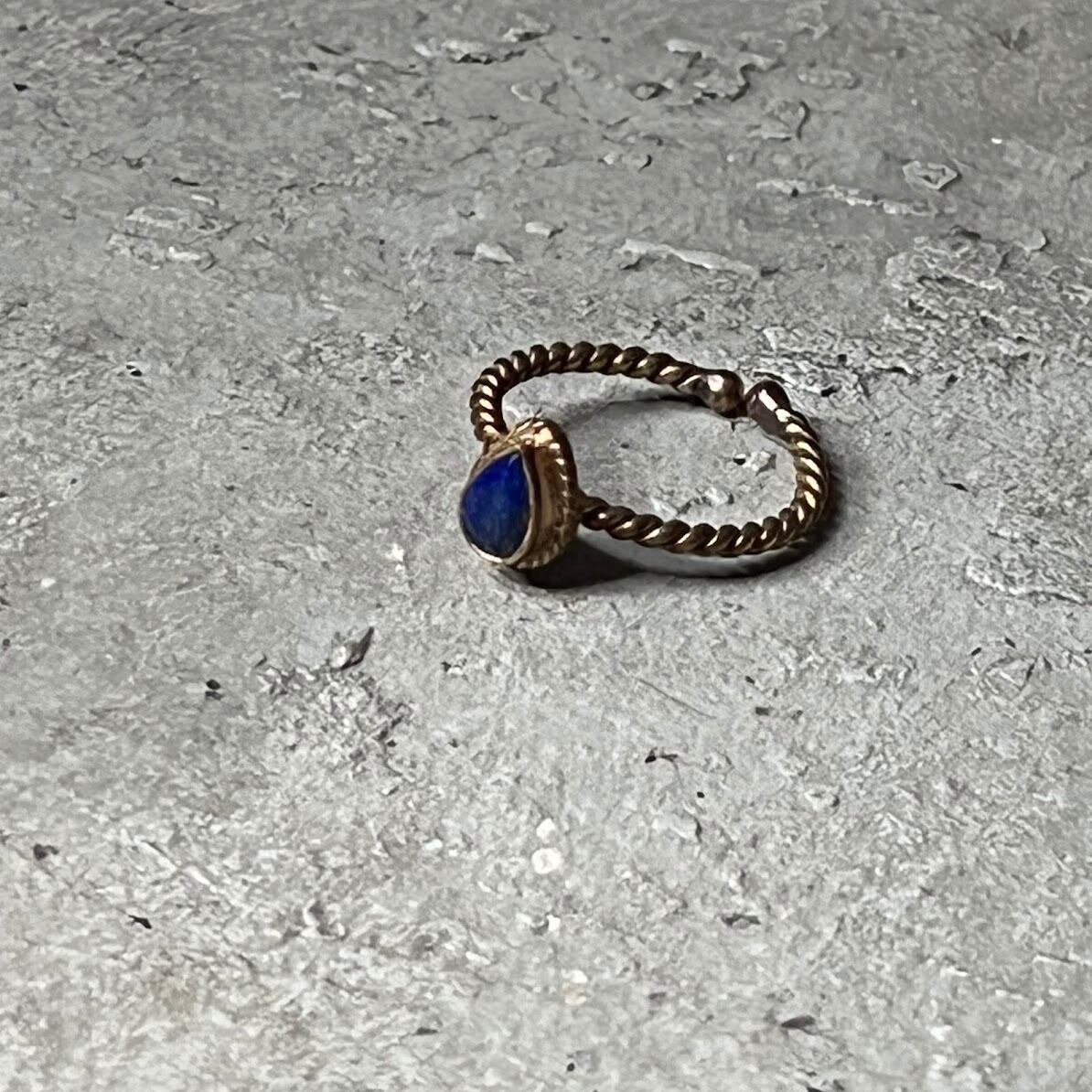 紺色のカットされた石と、古美のメッキが雰囲気あるフリーリングです。