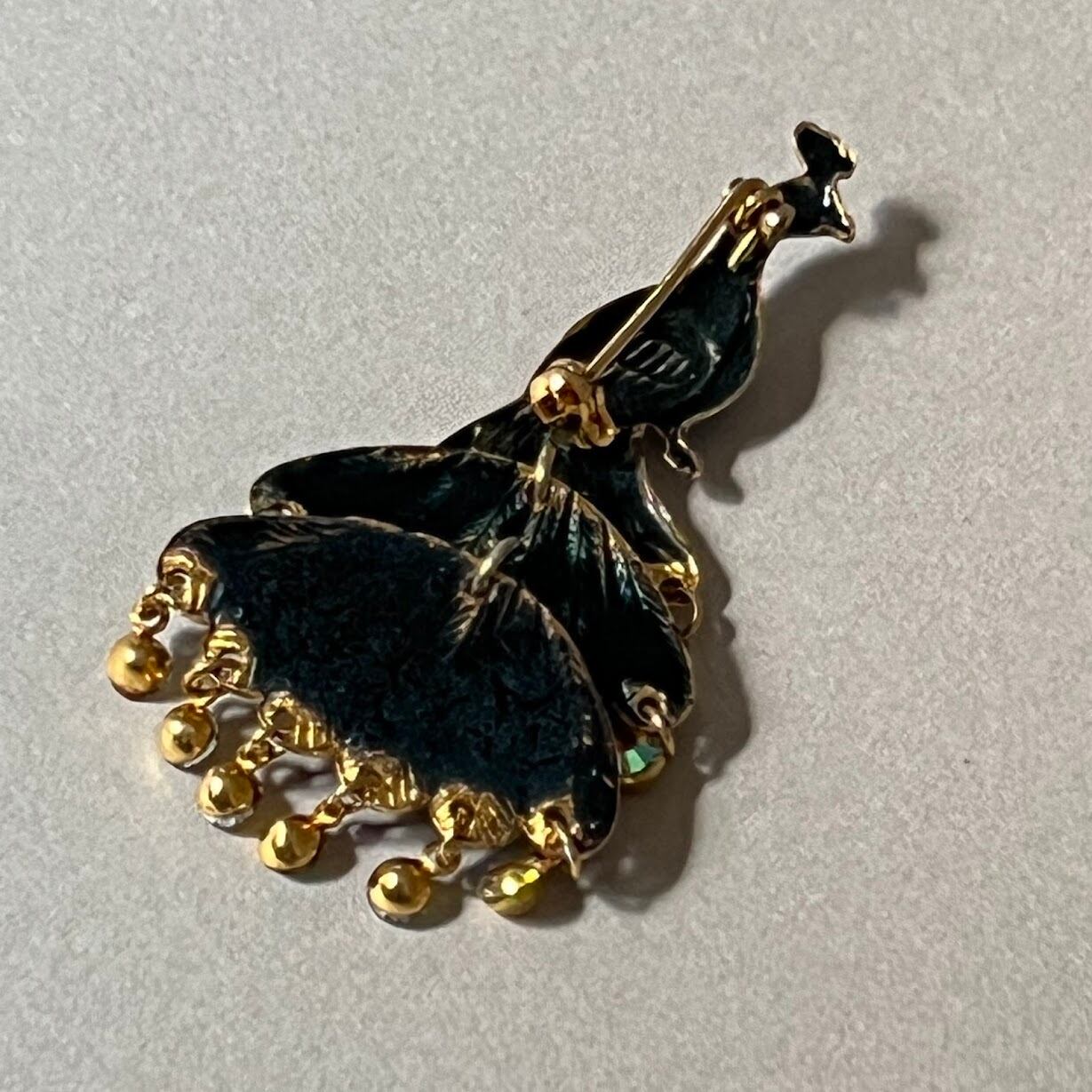 カラフルな色合いと揺れ動く仕様の羽とラインストーンが美しいブローチです。
