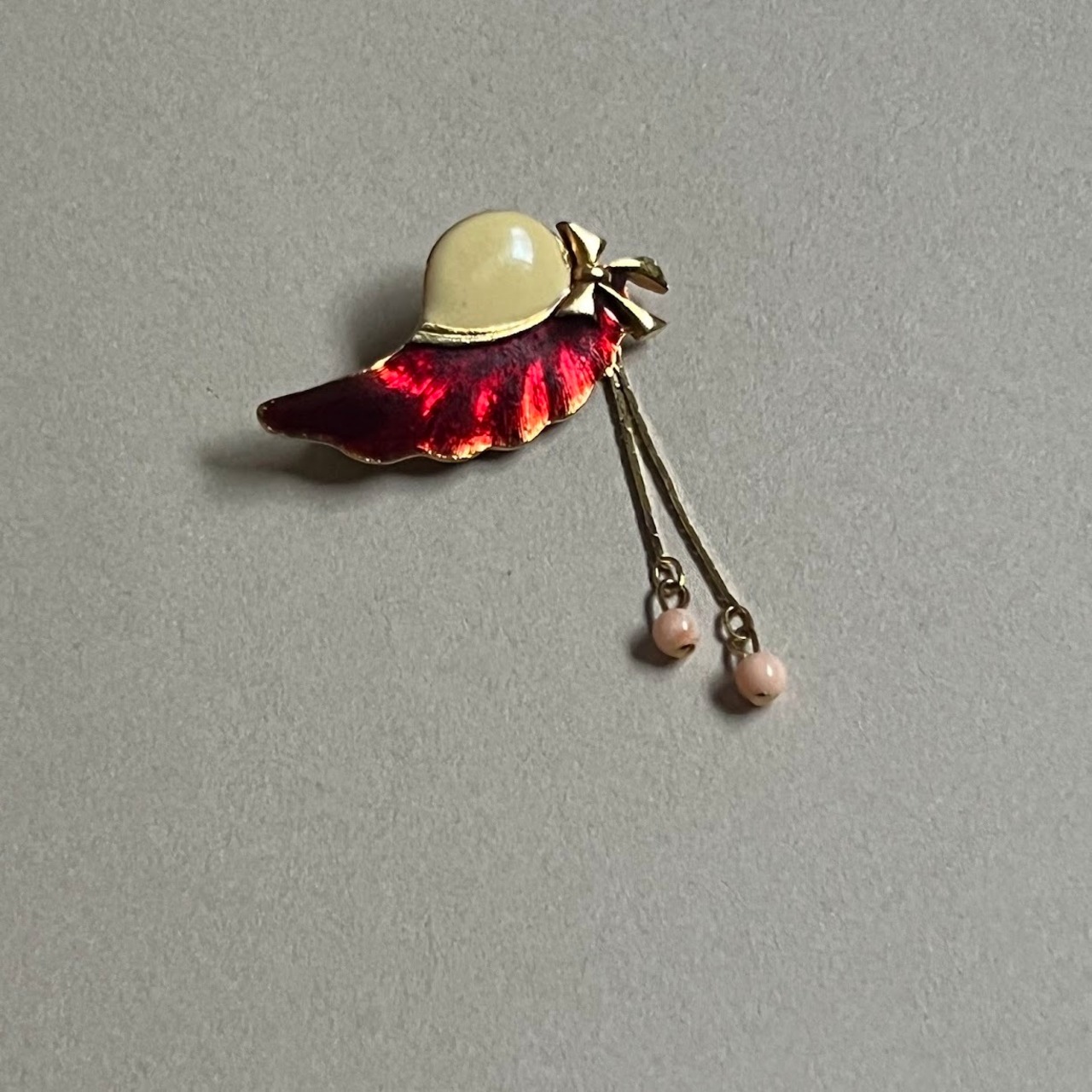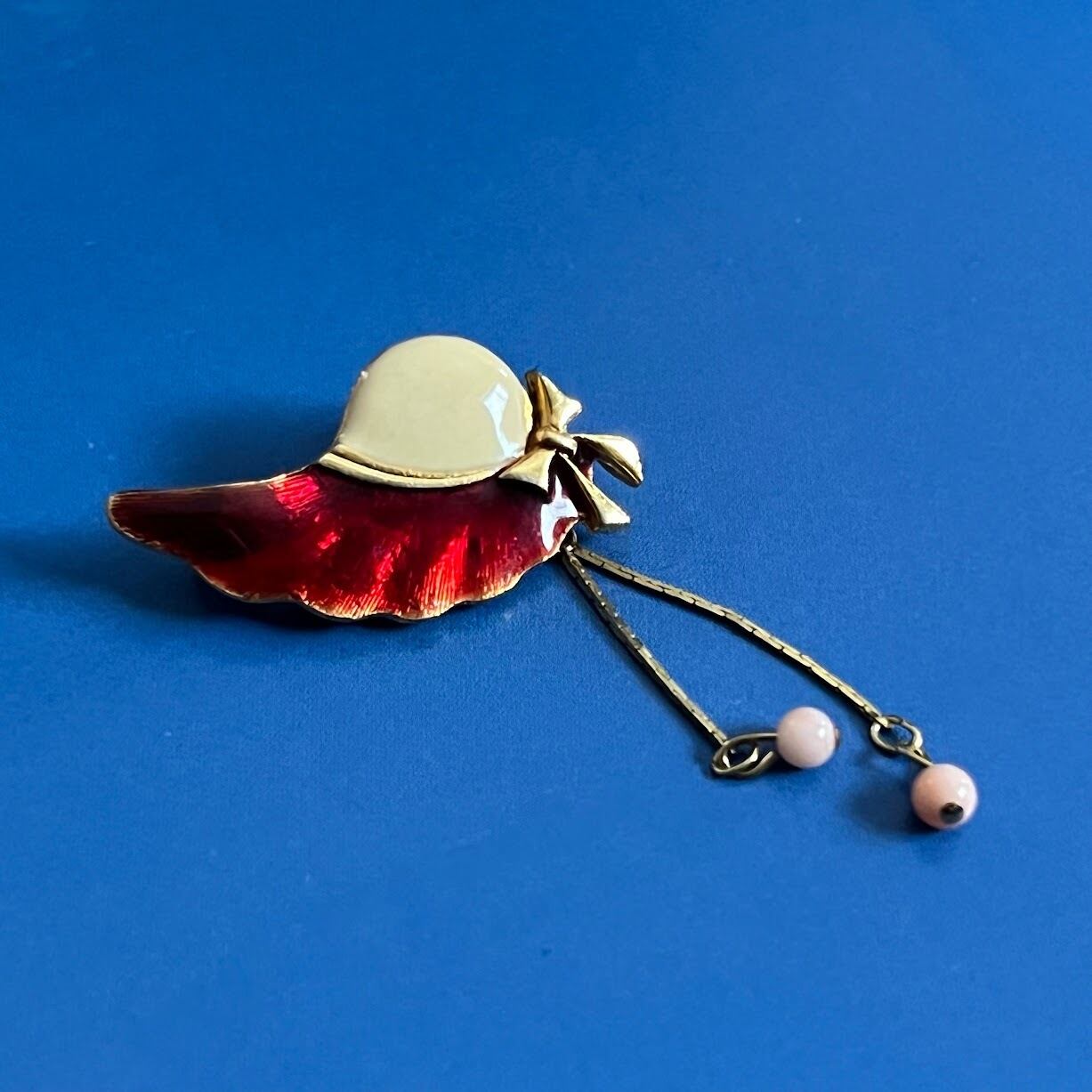 帽子のデザインとリボンとの組み合わせが、時代の雰囲気を感じるブローチです。