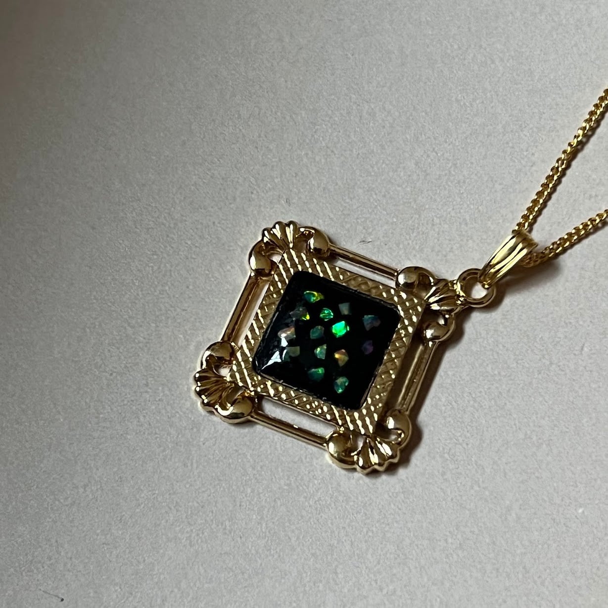 オパールならではの独特な色合いで輝く、小ぶりでつけやすいネックレスです。