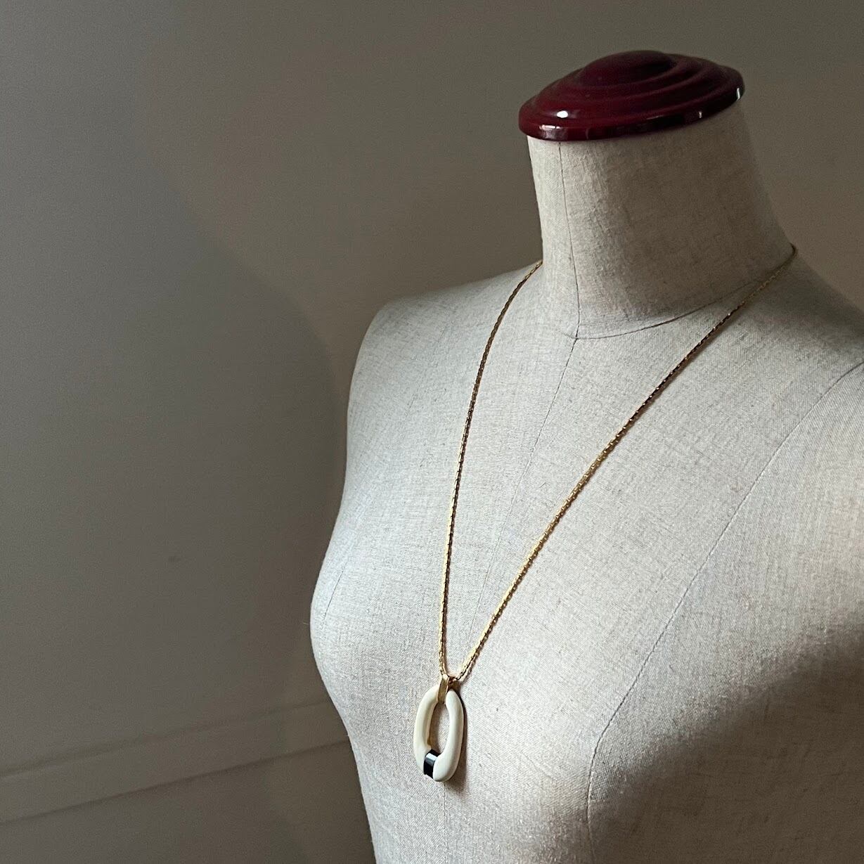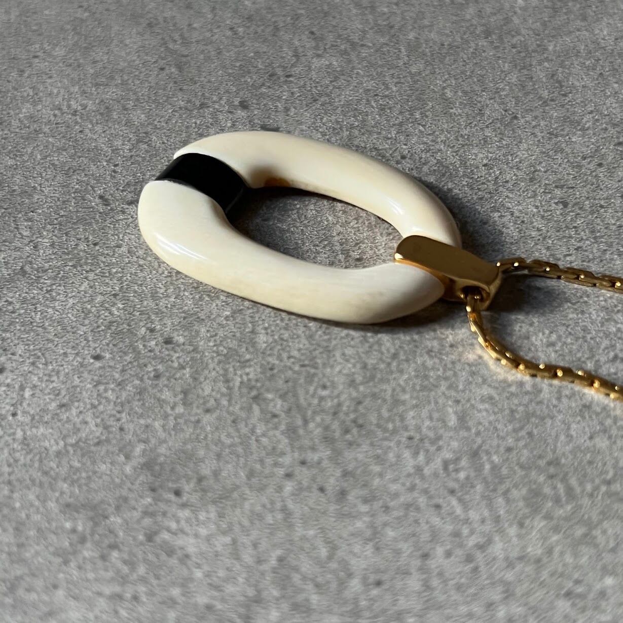 TOPのバイアカラーのデザインと、チェーンのバランスが雰囲気あるネックレスです。