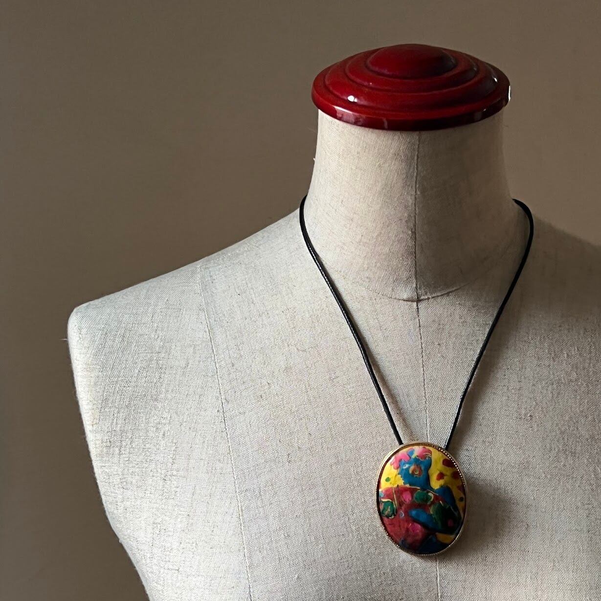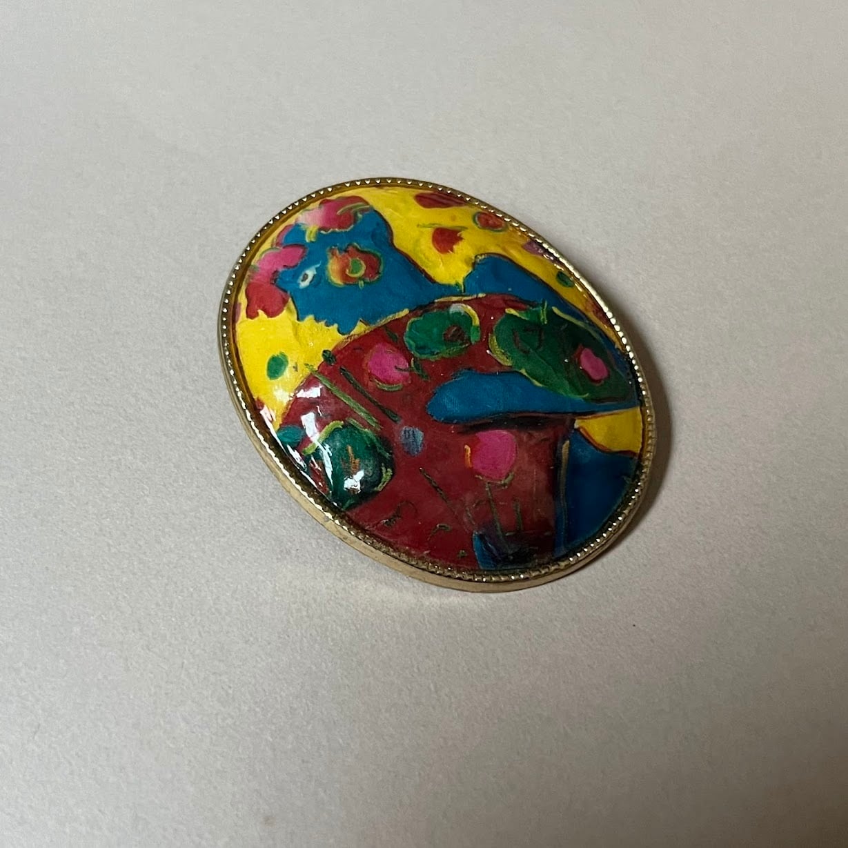 独特な色使いが、時代の雰囲気を感じるペンダントにもブローチにもなる2WAYアイテムです。