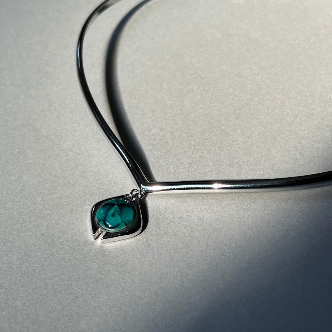 ワイヤーのチョーカーに、ヴィンテージ感あるTOPが魅力のネックレスです。