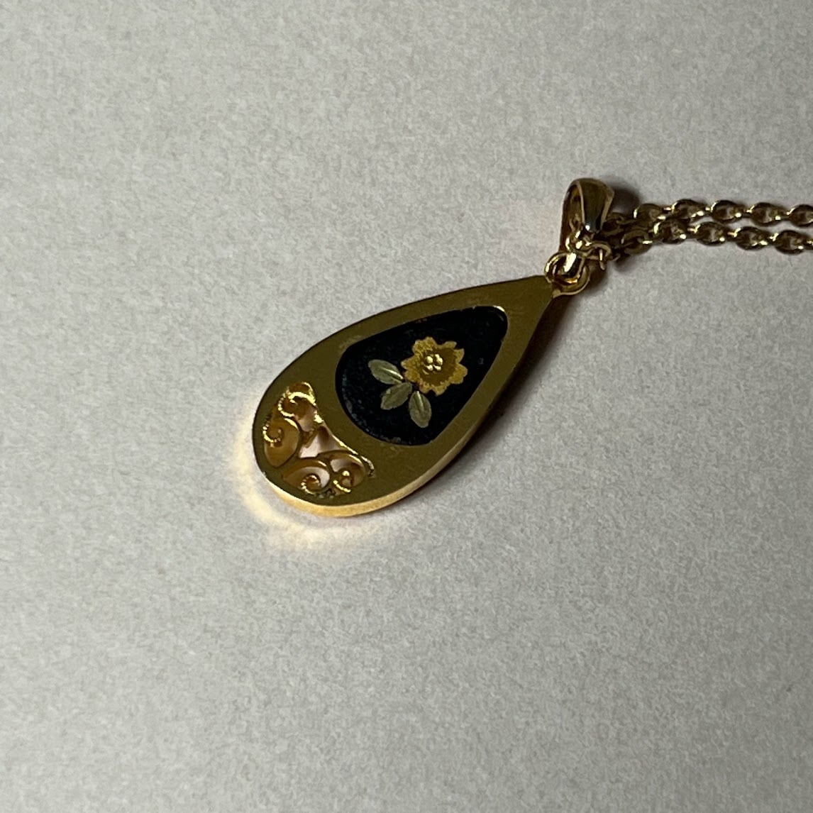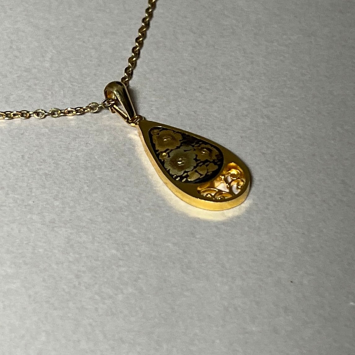 象嵌に透かしのデザインが入った、細工がきれいなネックレスです。