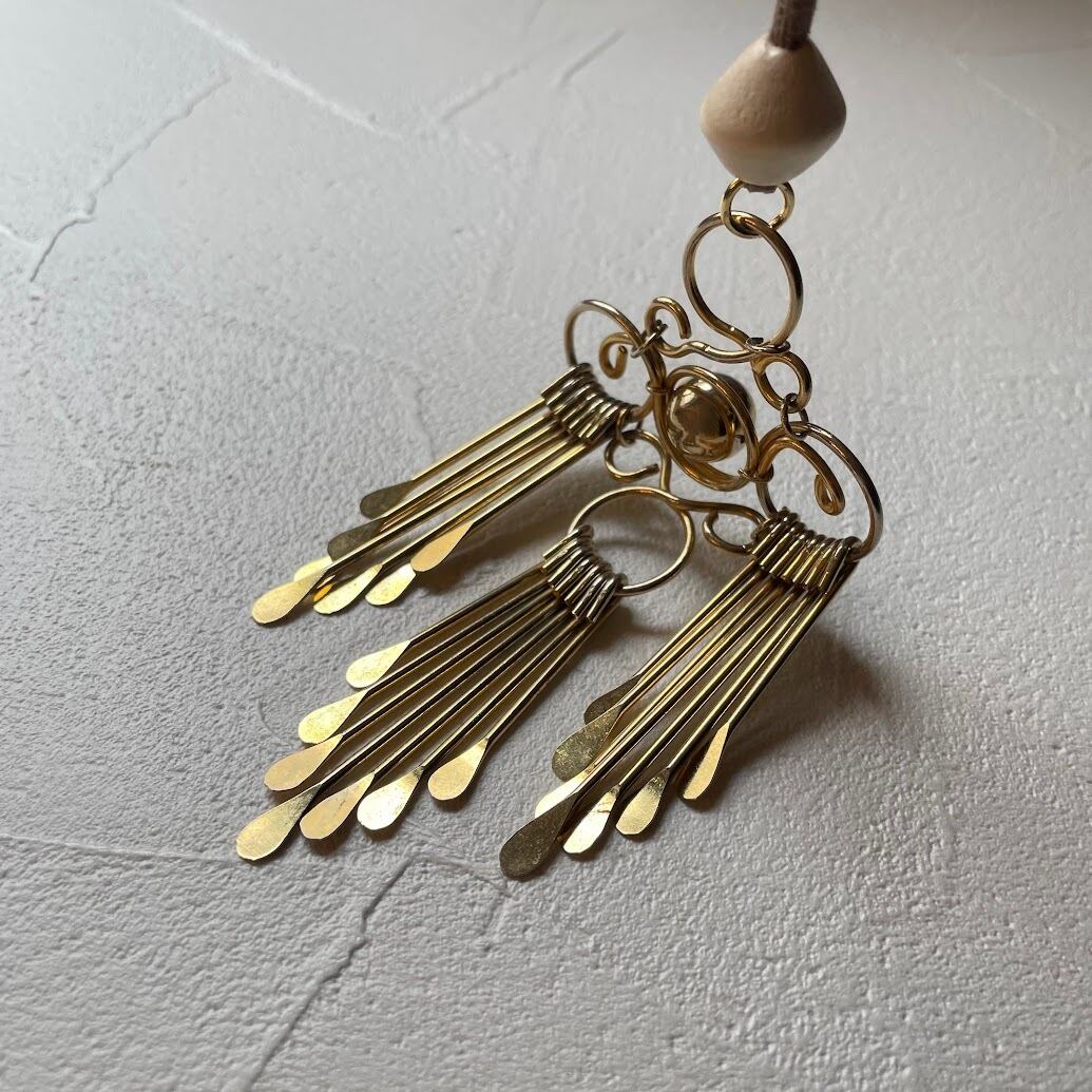 ワイヤーを曲げて叩きデザインされた、ハンドメイド感ある針金細工のネックレスです。