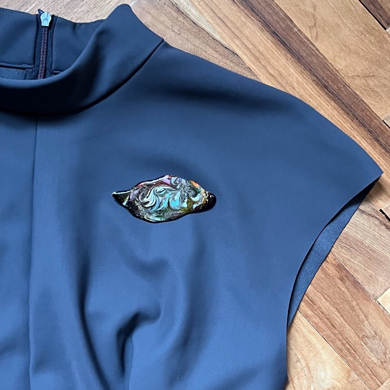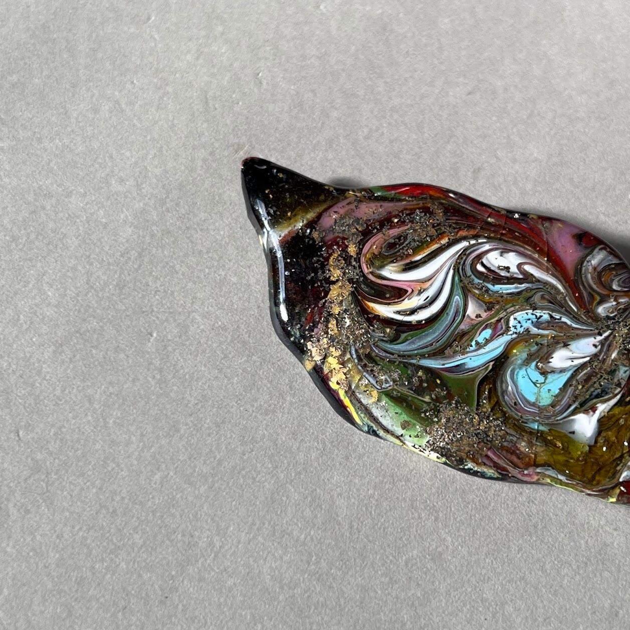 ウエーブのシルエットとマーブル模様がきれいな七宝焼きのブローチです。