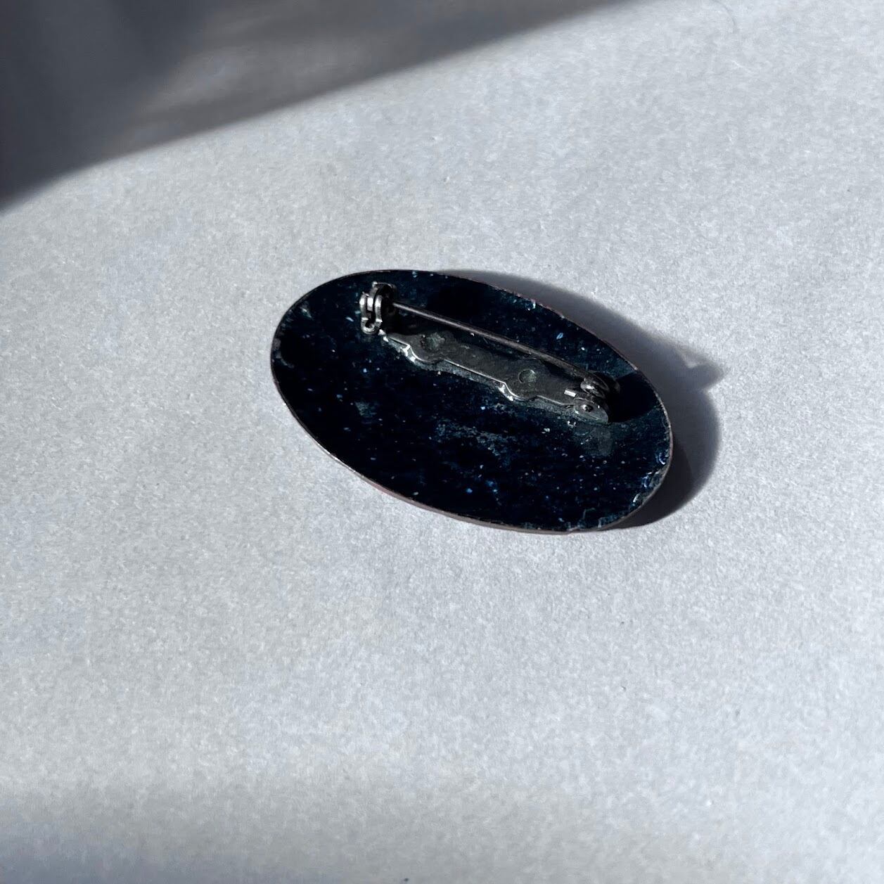 レトロな花のデザインが雰囲気ある七宝焼きのブローチです。