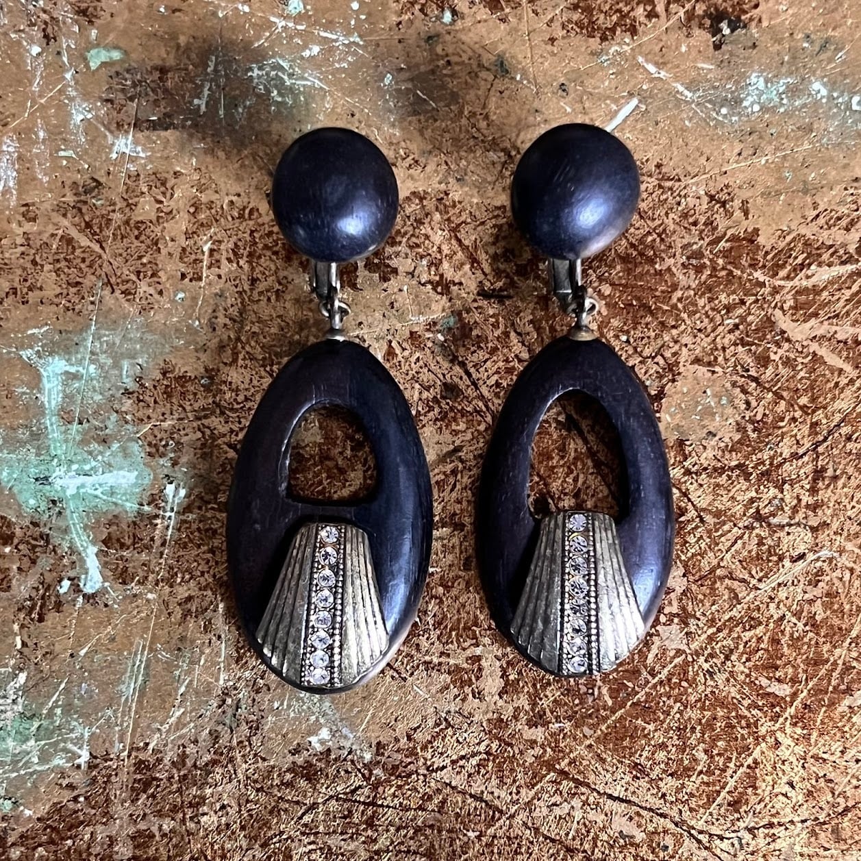 アンティークな雰囲気が素敵な、ウッドベースの軽量なイヤリングです。