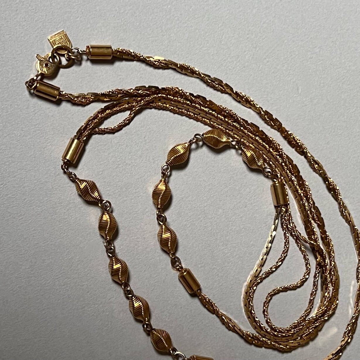 複数のチェーンを組み合わせて作られたデザインが、上品な表情チェーンネックレスです。
