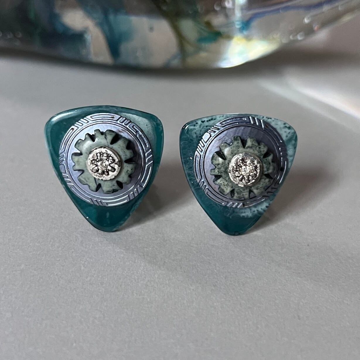 アセチの色合いがきれいな存在感あるイヤリングです。