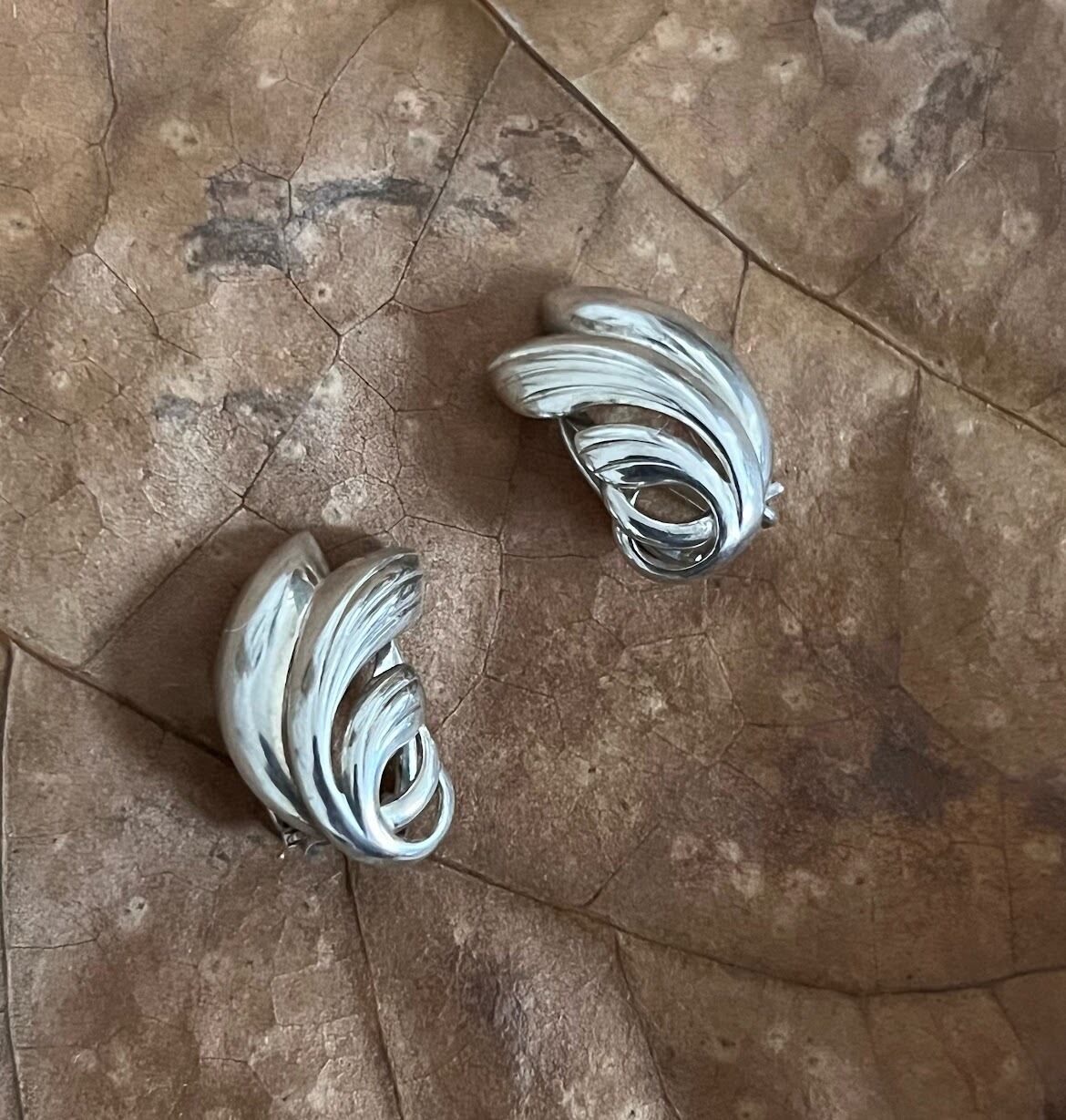 立体感あるリーフのデザインが魅力的な、ドイツ製のシルバー925イヤリングです。