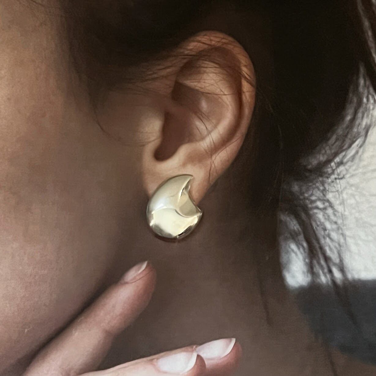 ぷっくりとしたフォルムにニュアンス的なデザインが、素敵なシルバー素材のイヤリングです。