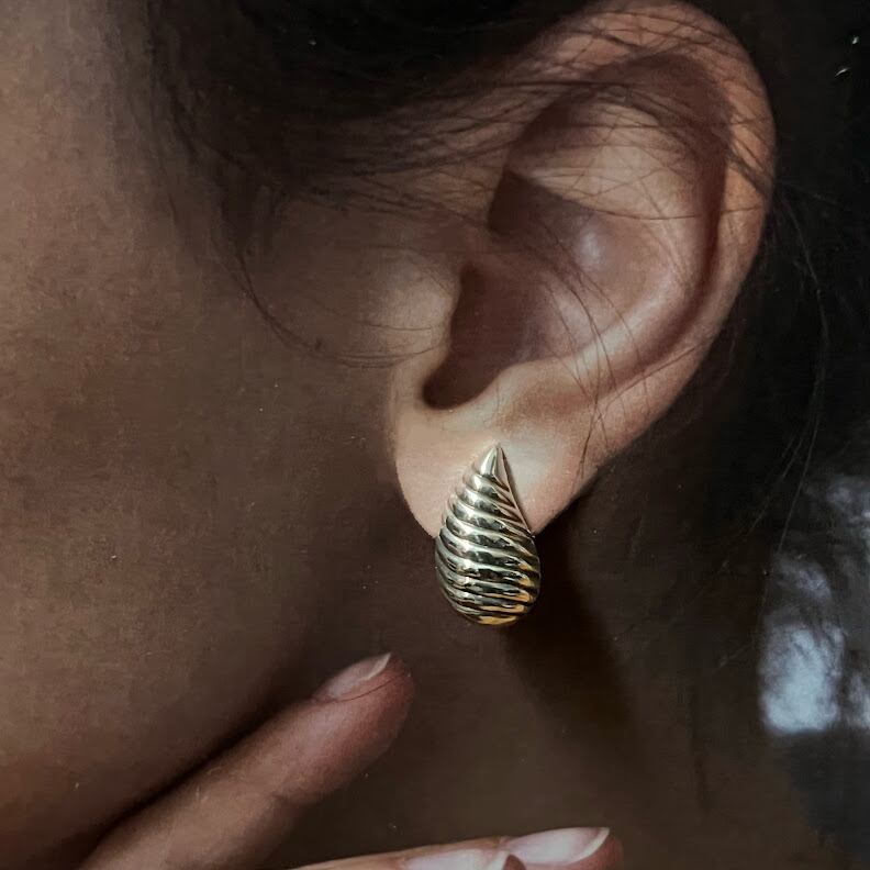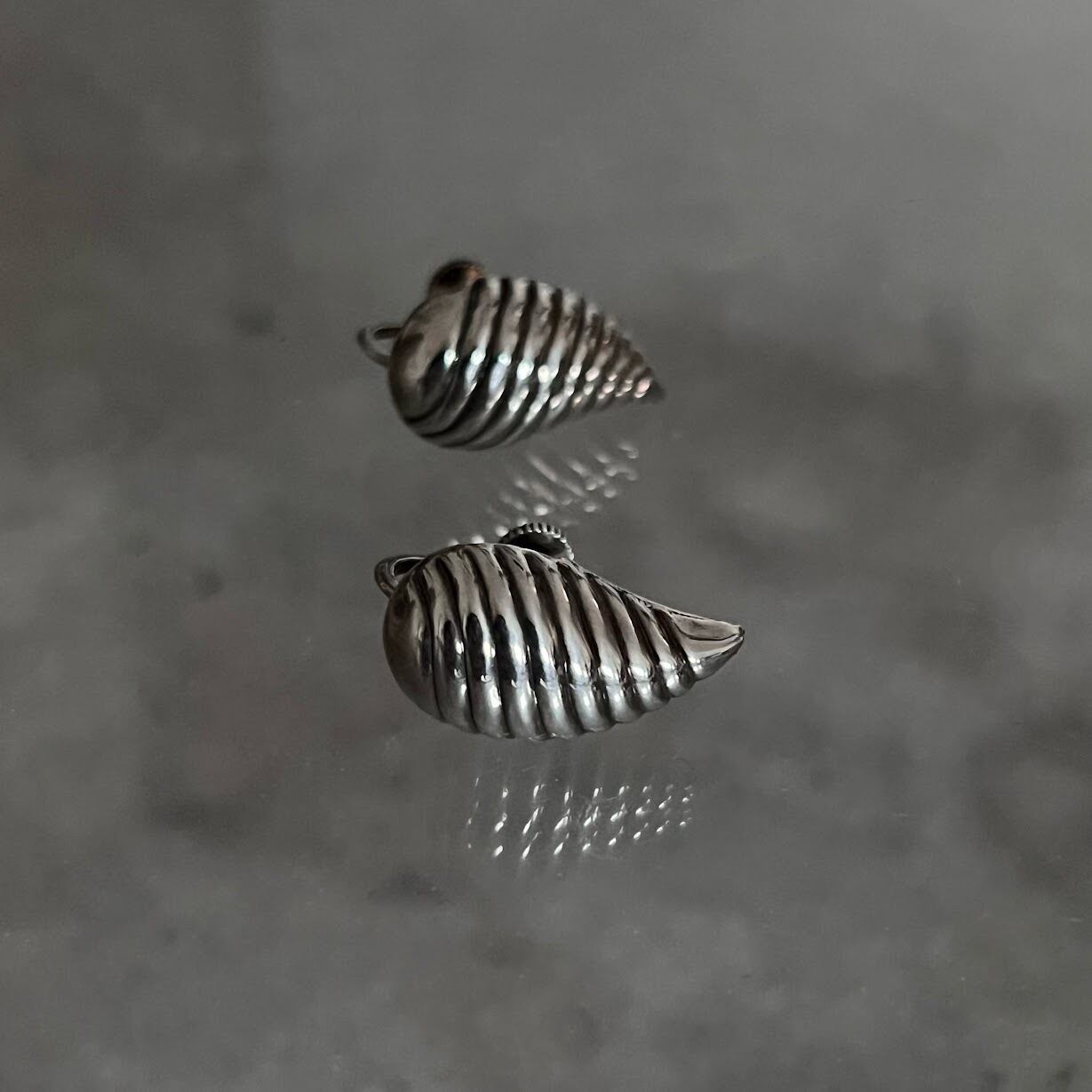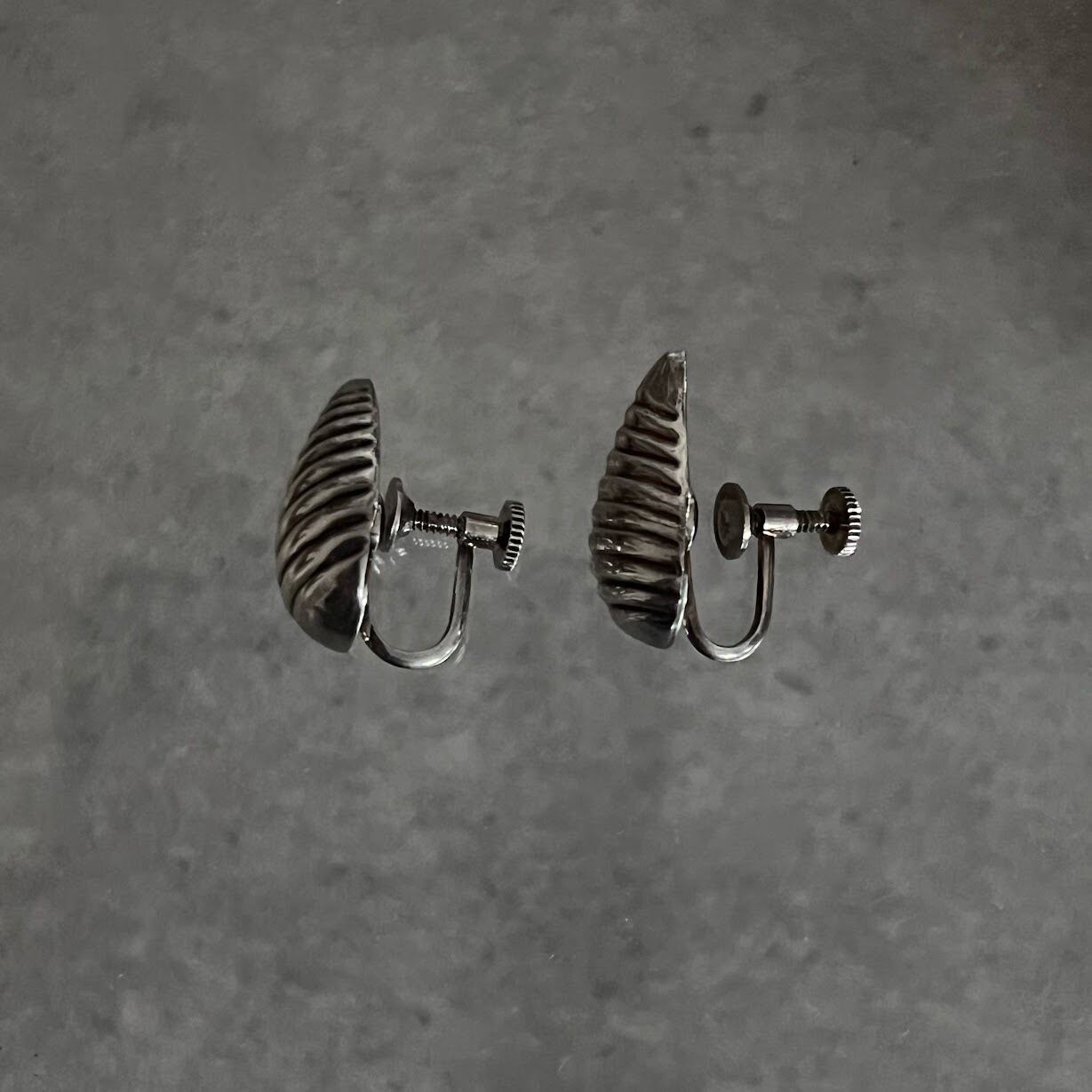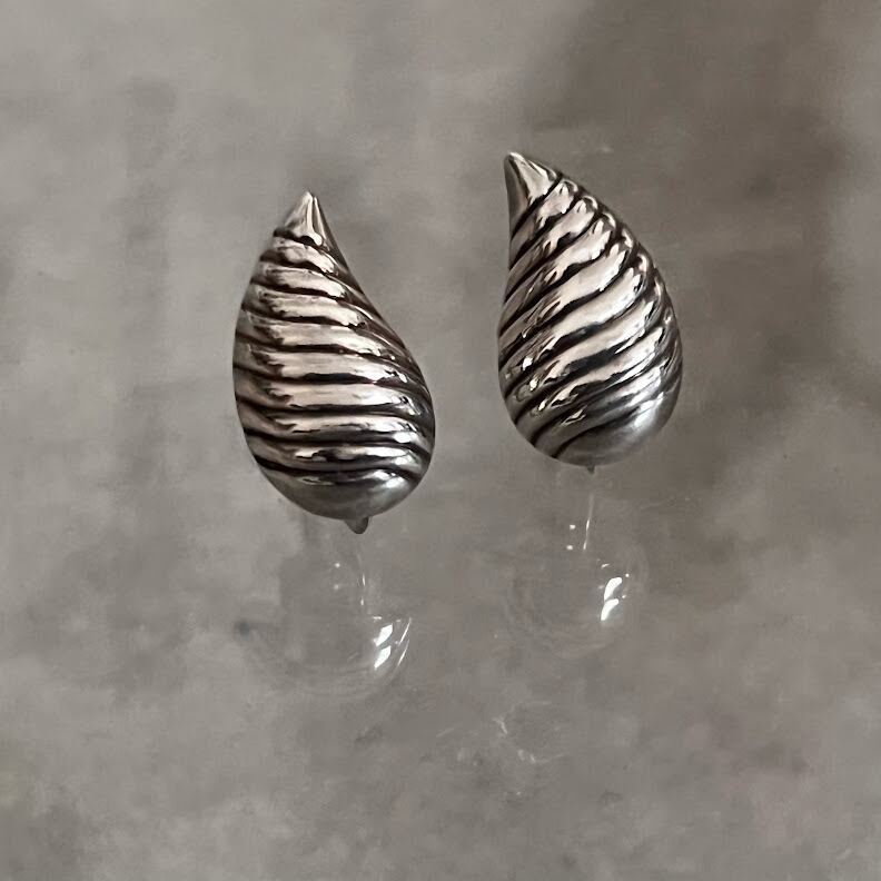 ドロップ型の表面に入ったラインがが雰囲気あるシルバー925のイヤリングです。