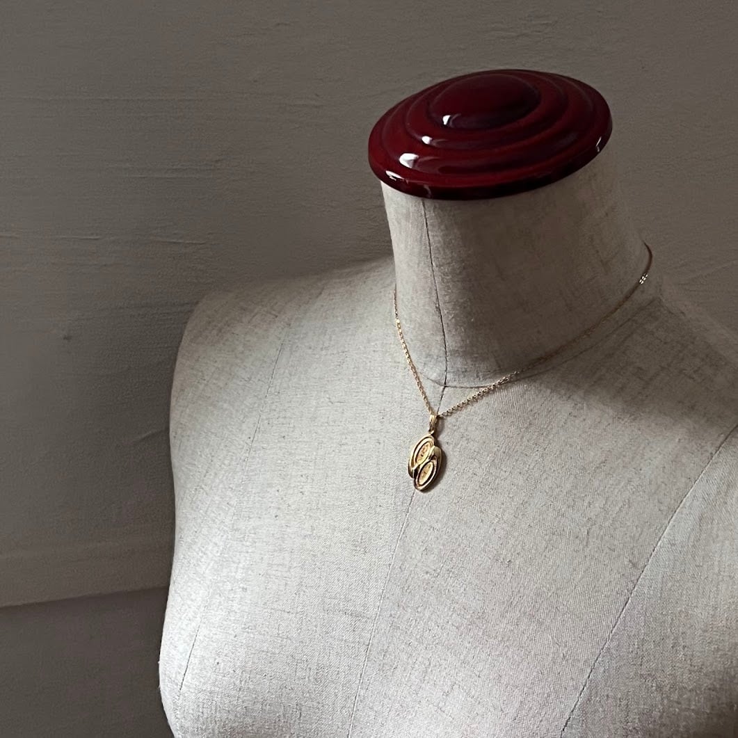 オーバルが重なったようなデザインが、ヴィンテージライクのネックレスです。