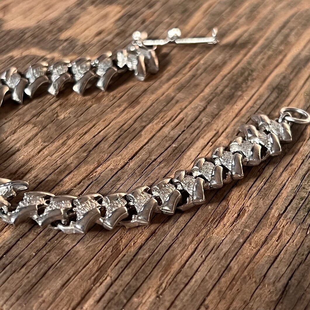 メタルとテクスチャーの組み合わせが雰囲気あるブレスレットです。