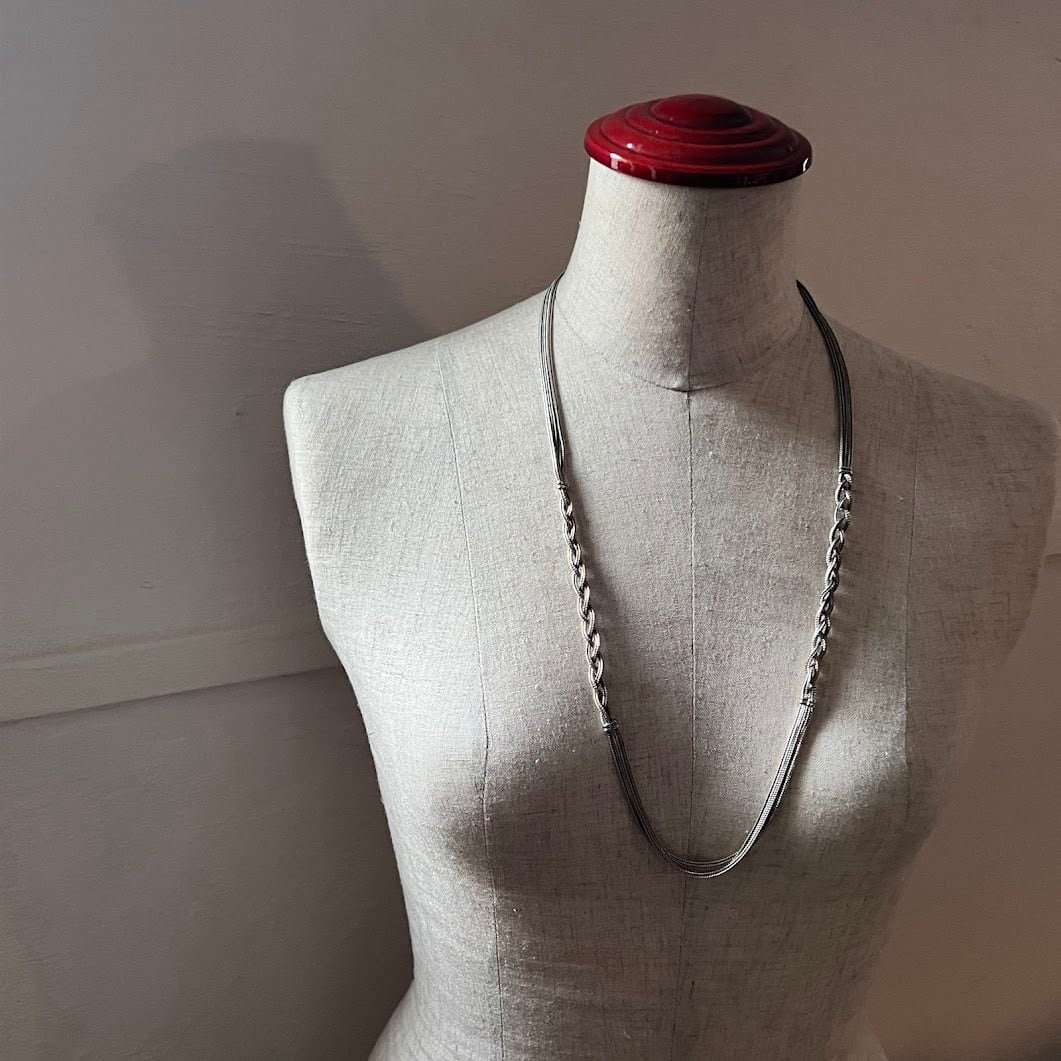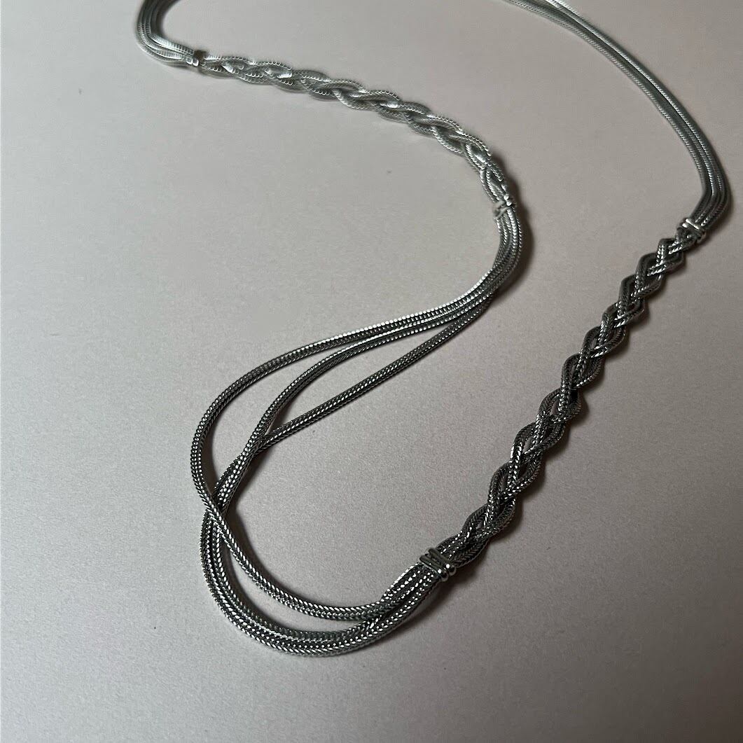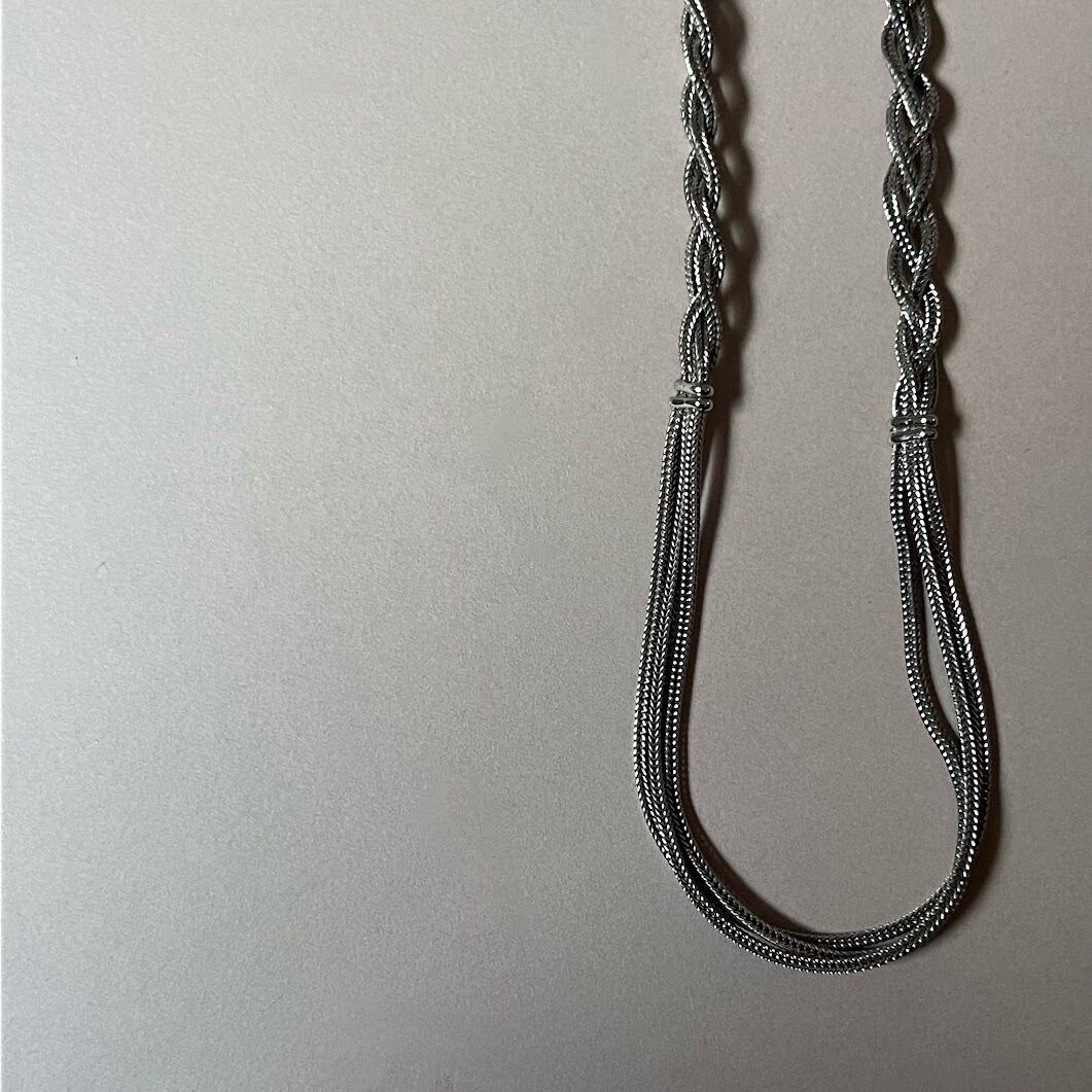 3本のチェーンを編み込んだデザインが魅力的なネックレスです。