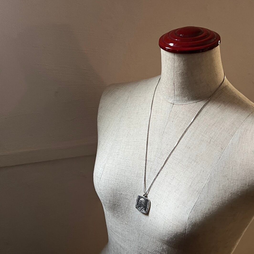 デザインに雰囲気がある、フランスのメダイを使ったヴィンテージネックレスです。