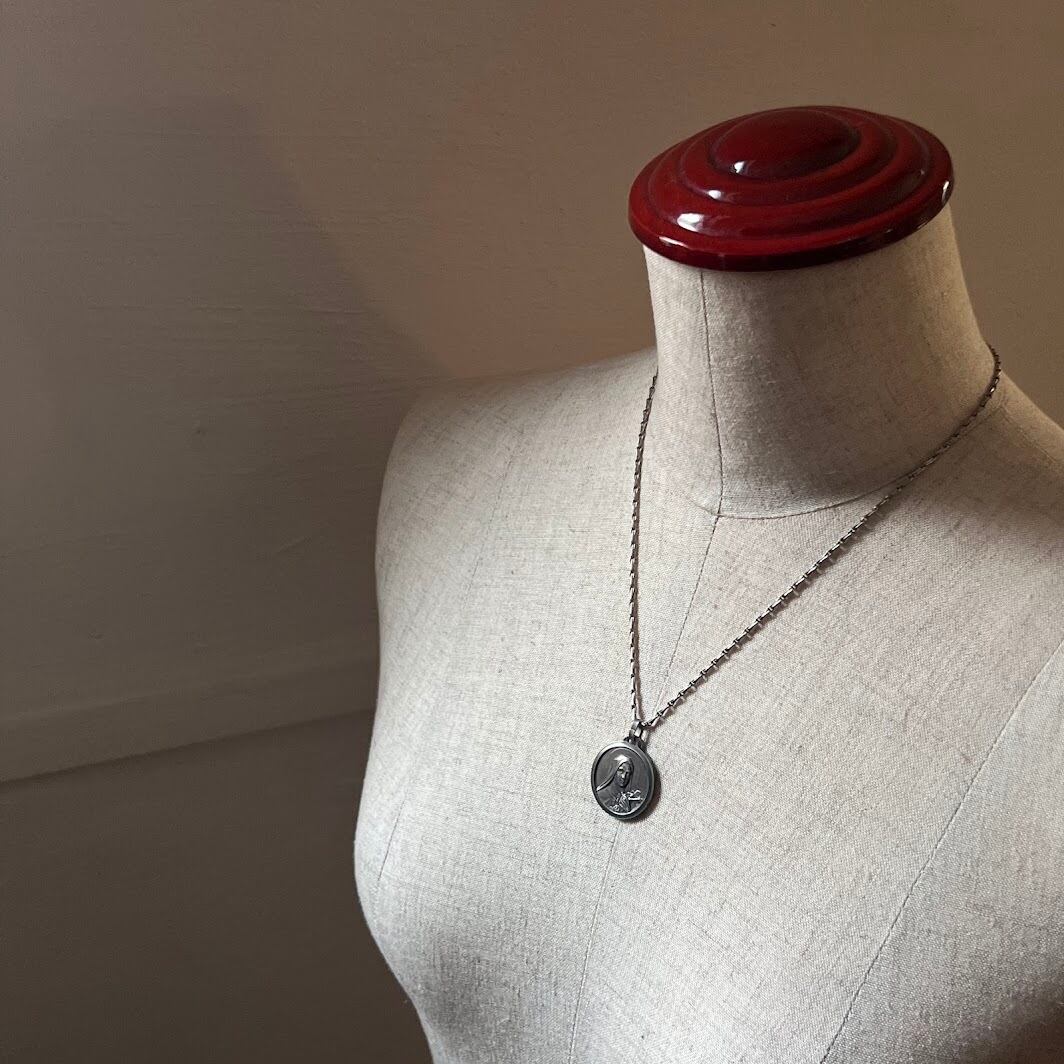 聖母マリアが描かれた、フランスのヴィンテージメダイネックレスです。