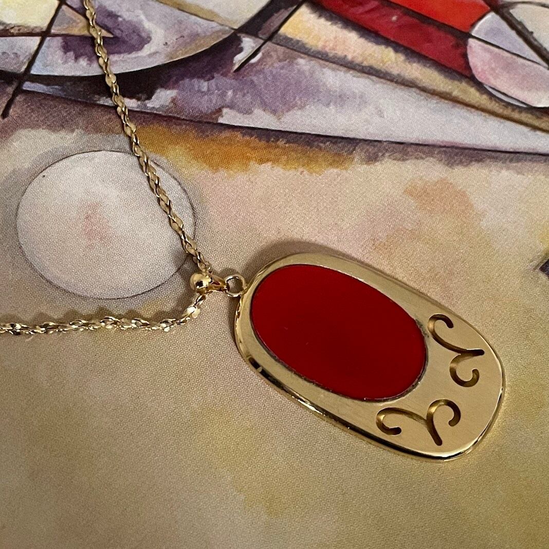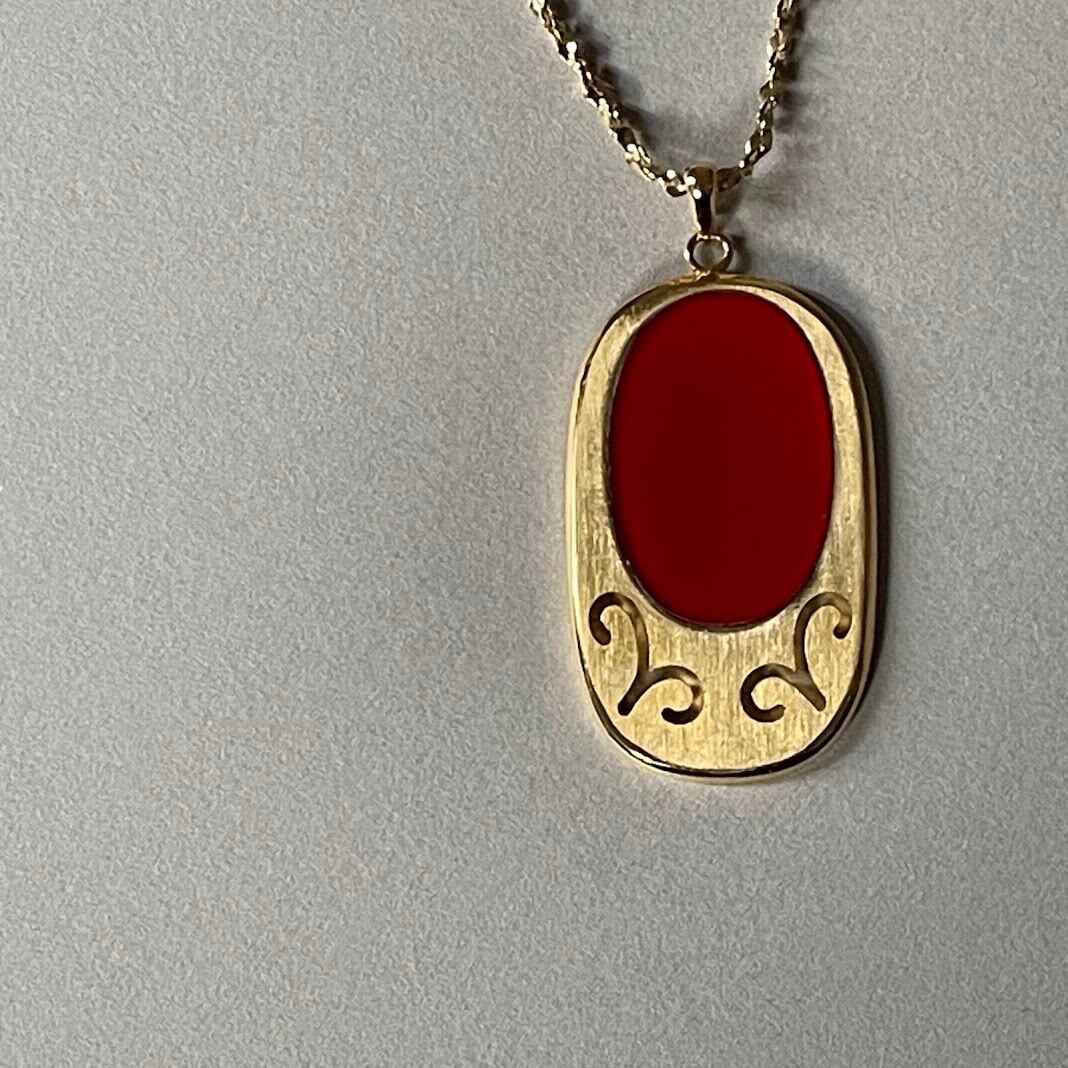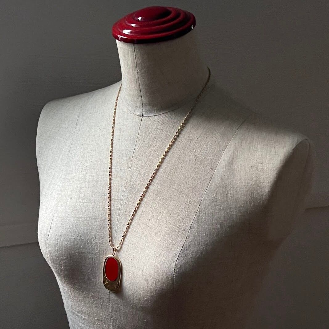 クラッシックなデザインにレッドのカラーが映えるヴィンテージライクなネックレスです。