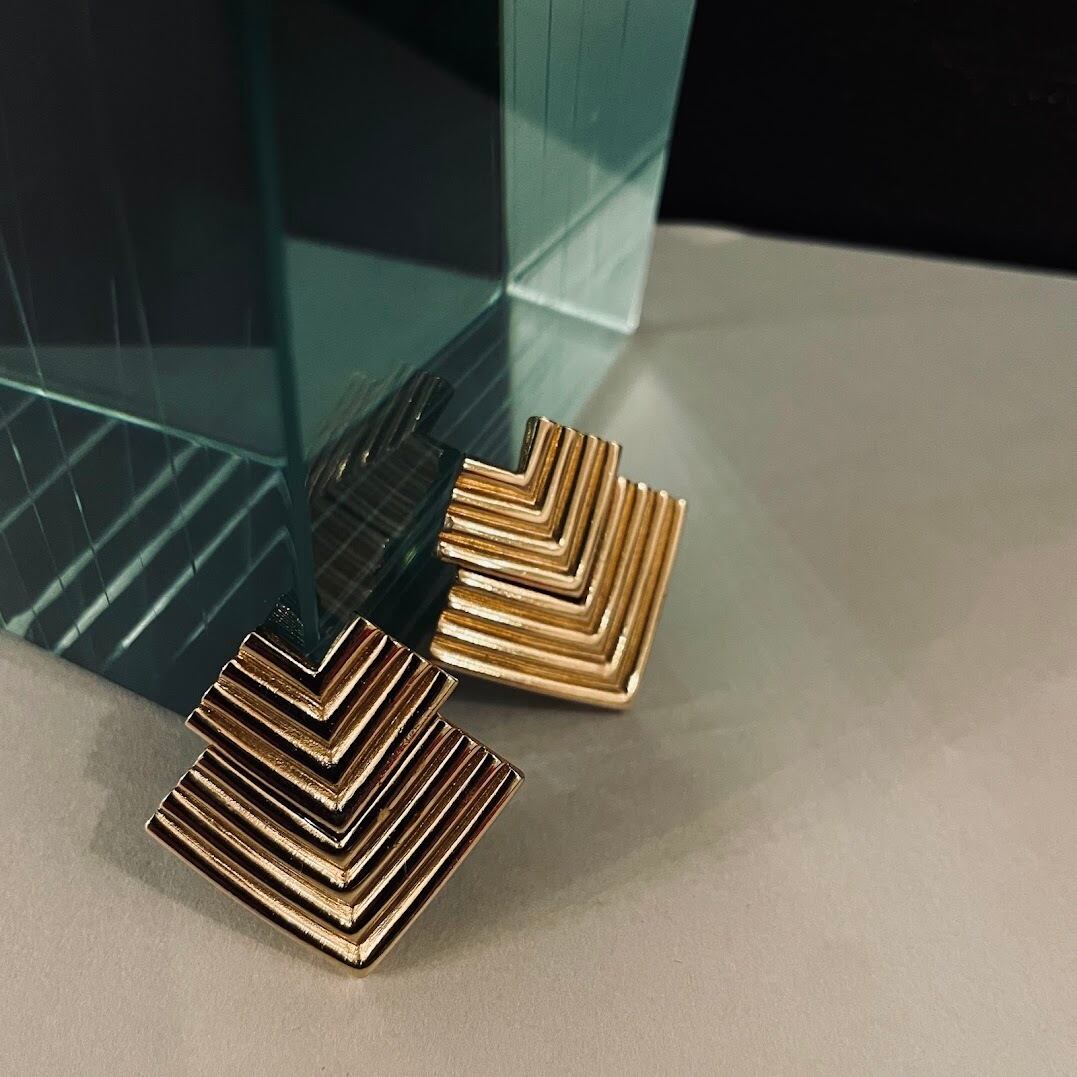 Vラインのパターンが雰囲気あるメタルのイヤリングです。