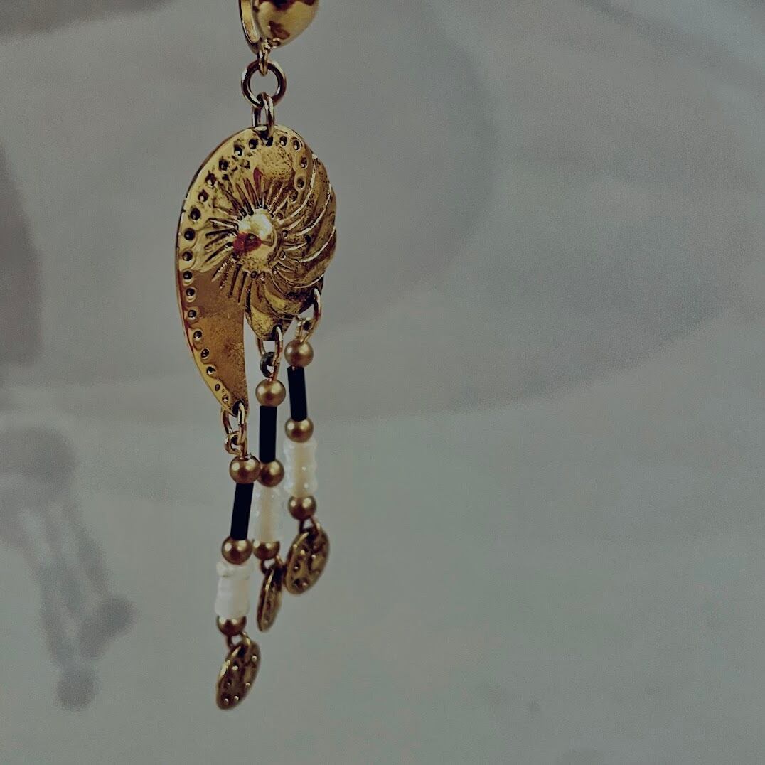 アンモナイトモチーフがおしゃれな縦のラインがきれいなイヤリングです。