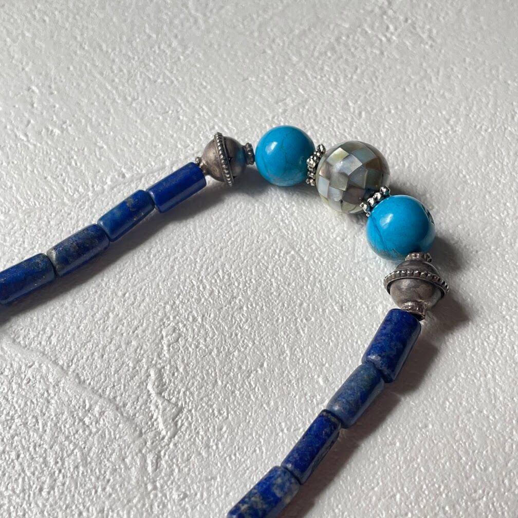 天然石やメタルの風合いあるパーツが、ヴィンテージ感あるショートネックレスです。