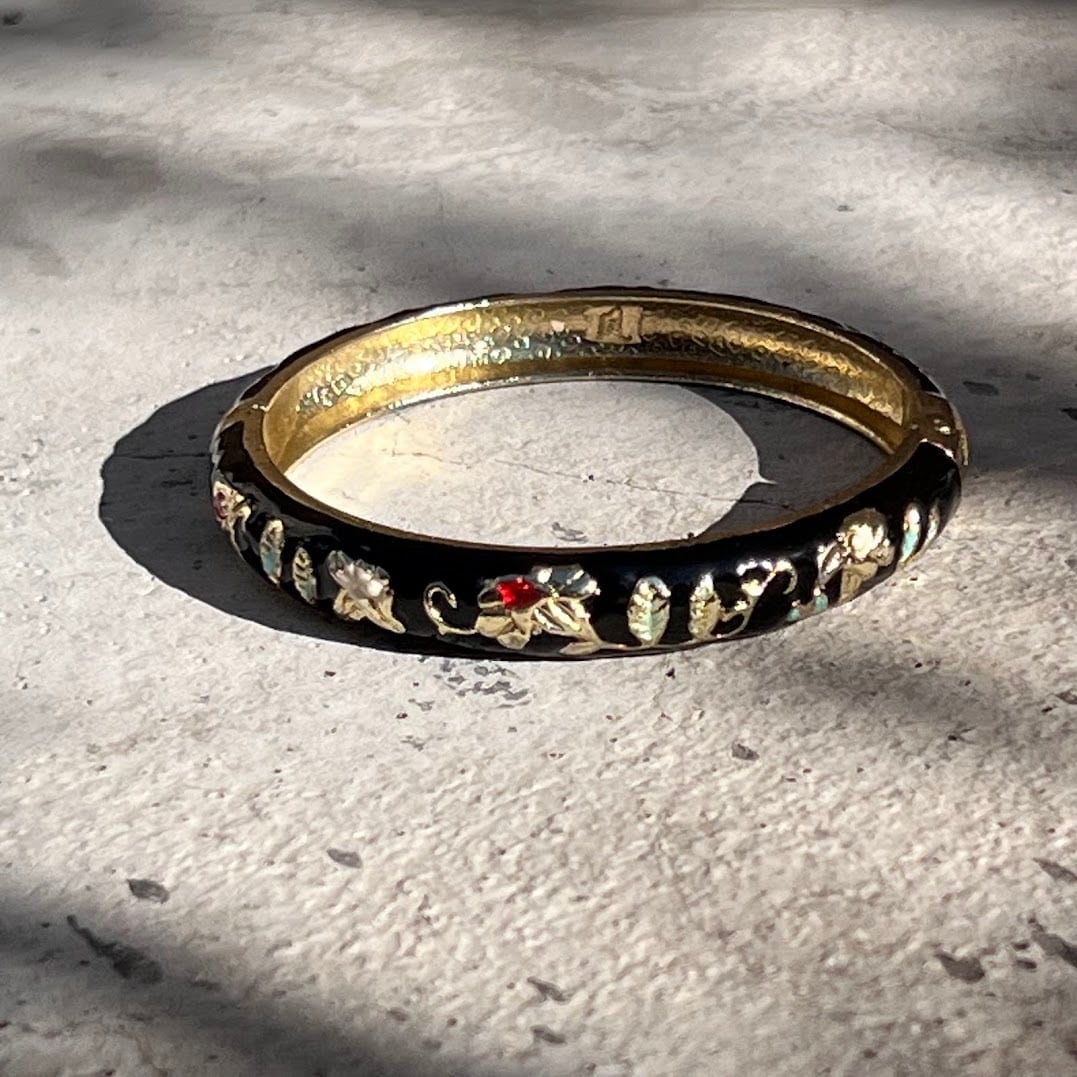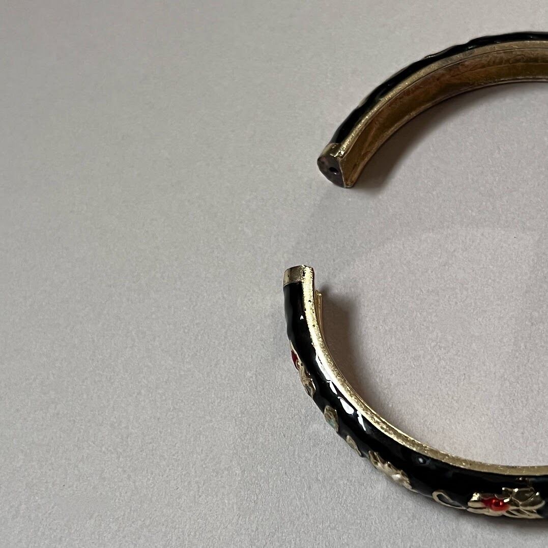 植物のデザインと、ブラックベースにカラフルな色合いが魅力のバングルです。