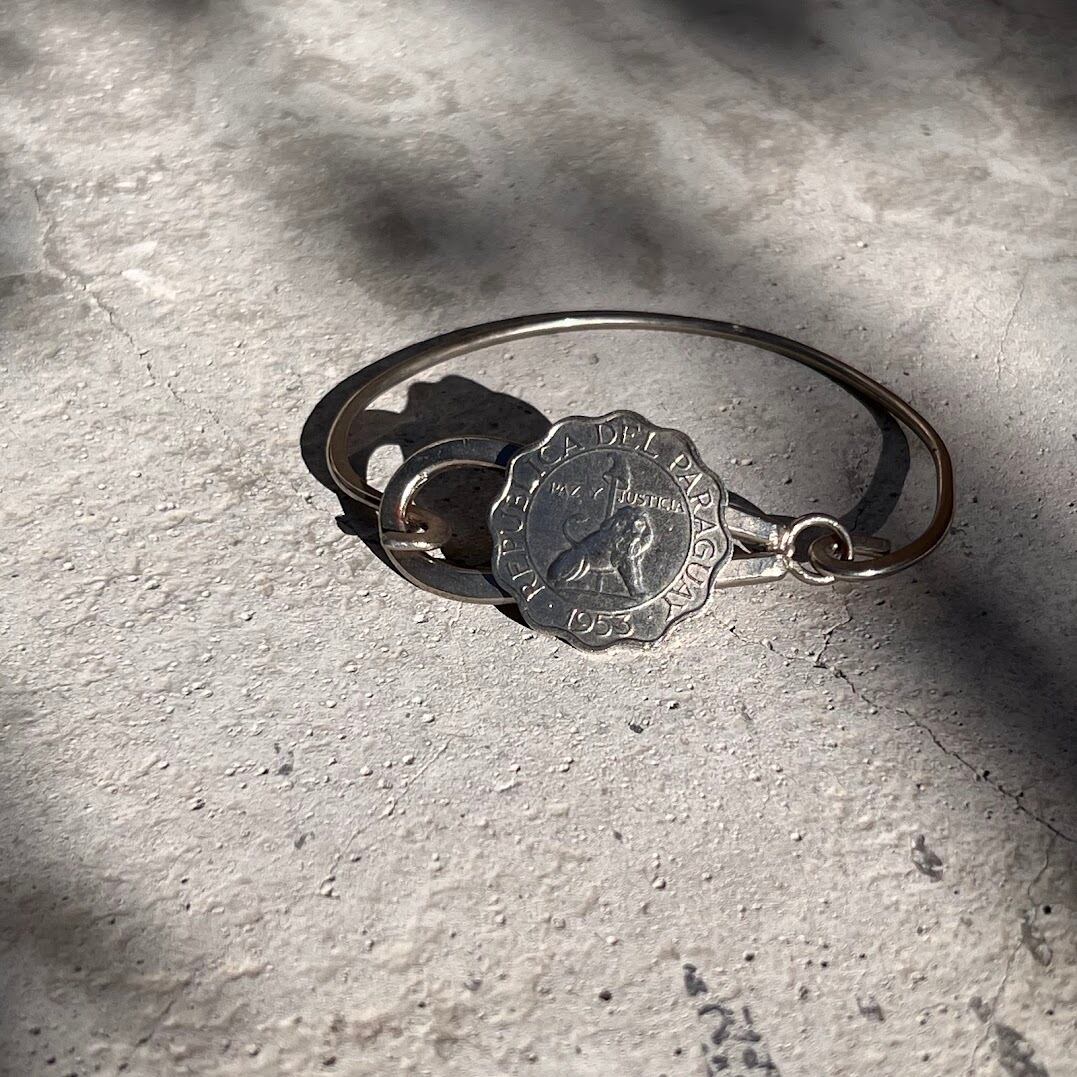 パラグアイのヴィンテージコインを使ったバングルタイプのブレスレットです。