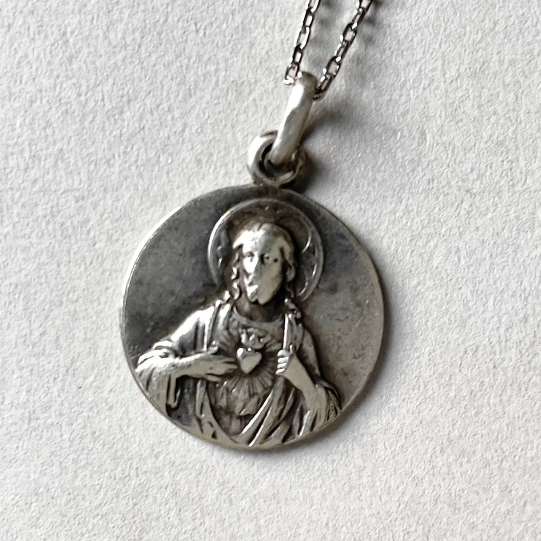 デザインに雰囲気がある、フランスのメダイを使ったヴィンテージネックレスです。