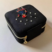 新品のジュエリーボックスに、ユーズドブローチのモチーフ部分を装飾したアップサイクルアイテム。