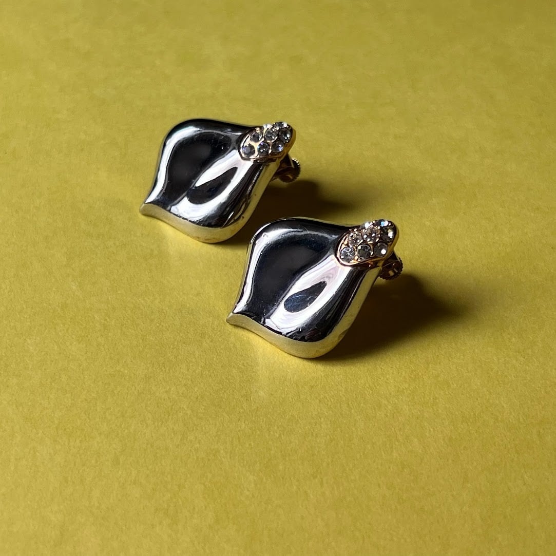 曲線のフォルムがニュアンス感あるメタルのイヤリングです。