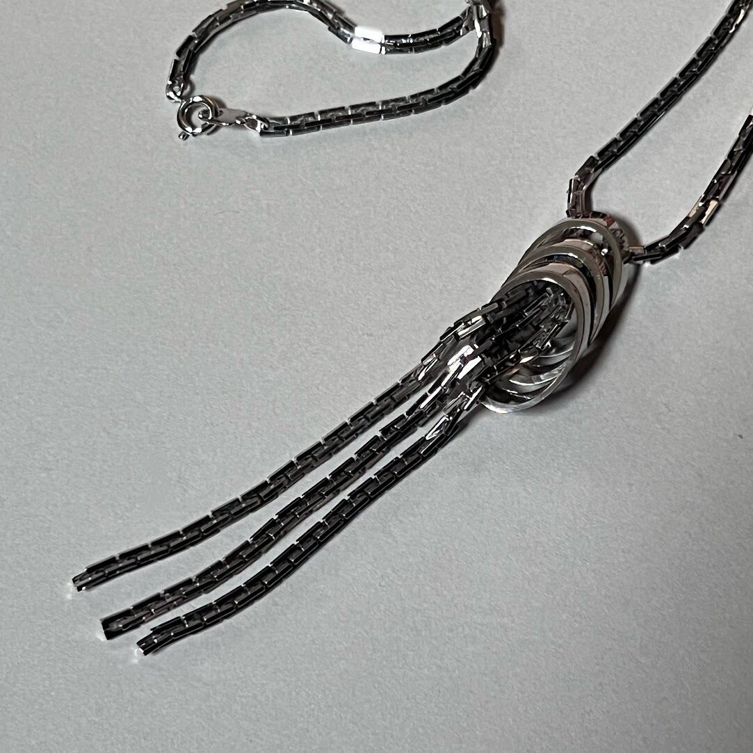 三連の輪っかに太目のチェーンが程よい存在感のネックレスです。