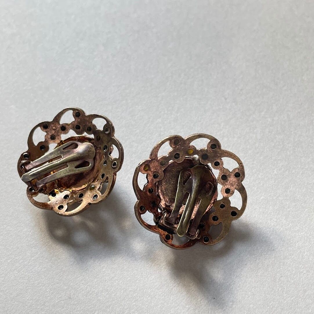 細かい装飾とブロンズのメッキがクラシカルな雰囲気を出しているイヤリングです。